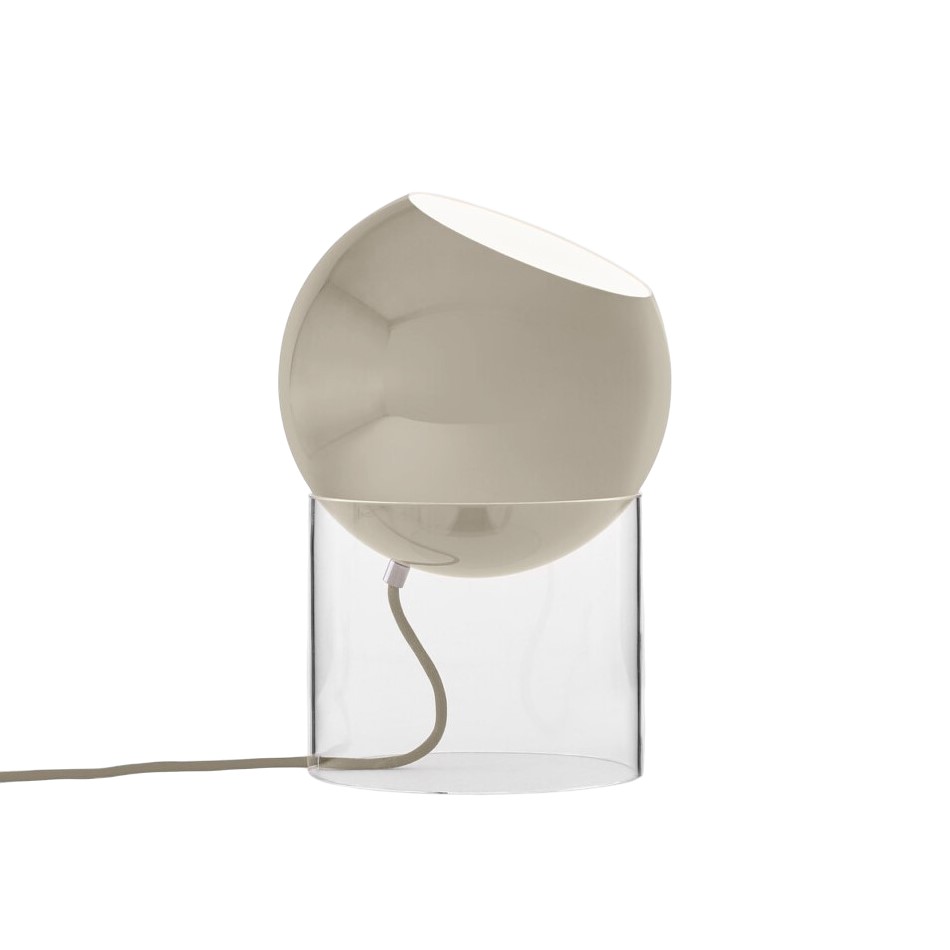 Настольная лампа &tradition Topan VP13 Grey Beige с плафоном из металла серо-бежевого цвета и основанием из прозрачного акрила..
