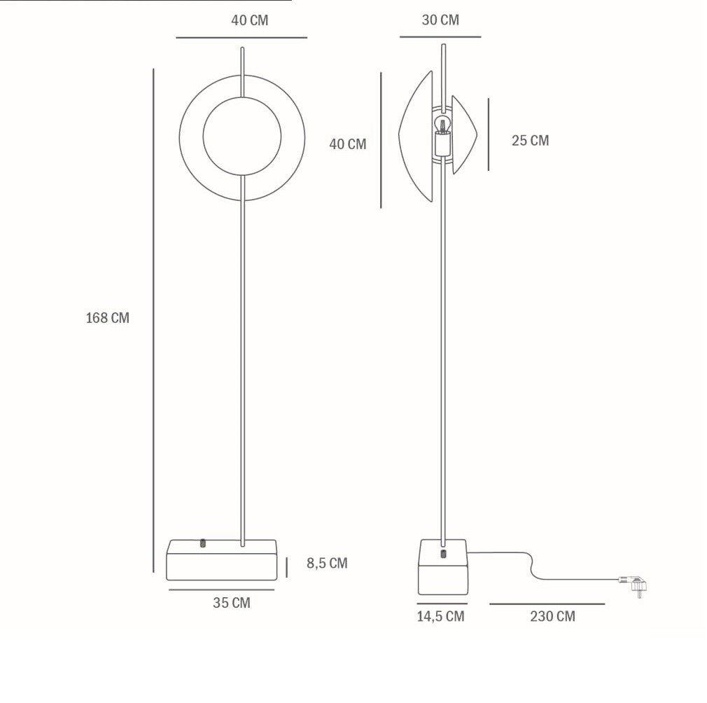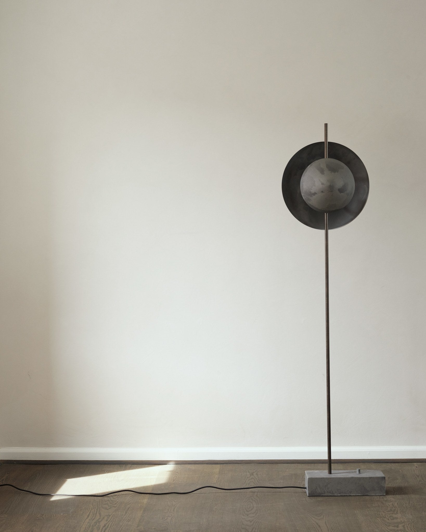 Напольная лампа Dawn передает динамичный художественный образ небесного светила — аллегория солнечного затмения или планетарной орбиты. Символичный автограф бренда представлен в смелой геометрии архитектуры. Игра с контрастами света и тени, благодаря многослойному объемному абажуру, создает атмосферное свечение. Прочное индустриальное основание из необработанного оксидированного алюминия гармонично дополняет общую композицию, наделяющую свет объемной эстетикой, тактильностью и смыслом.