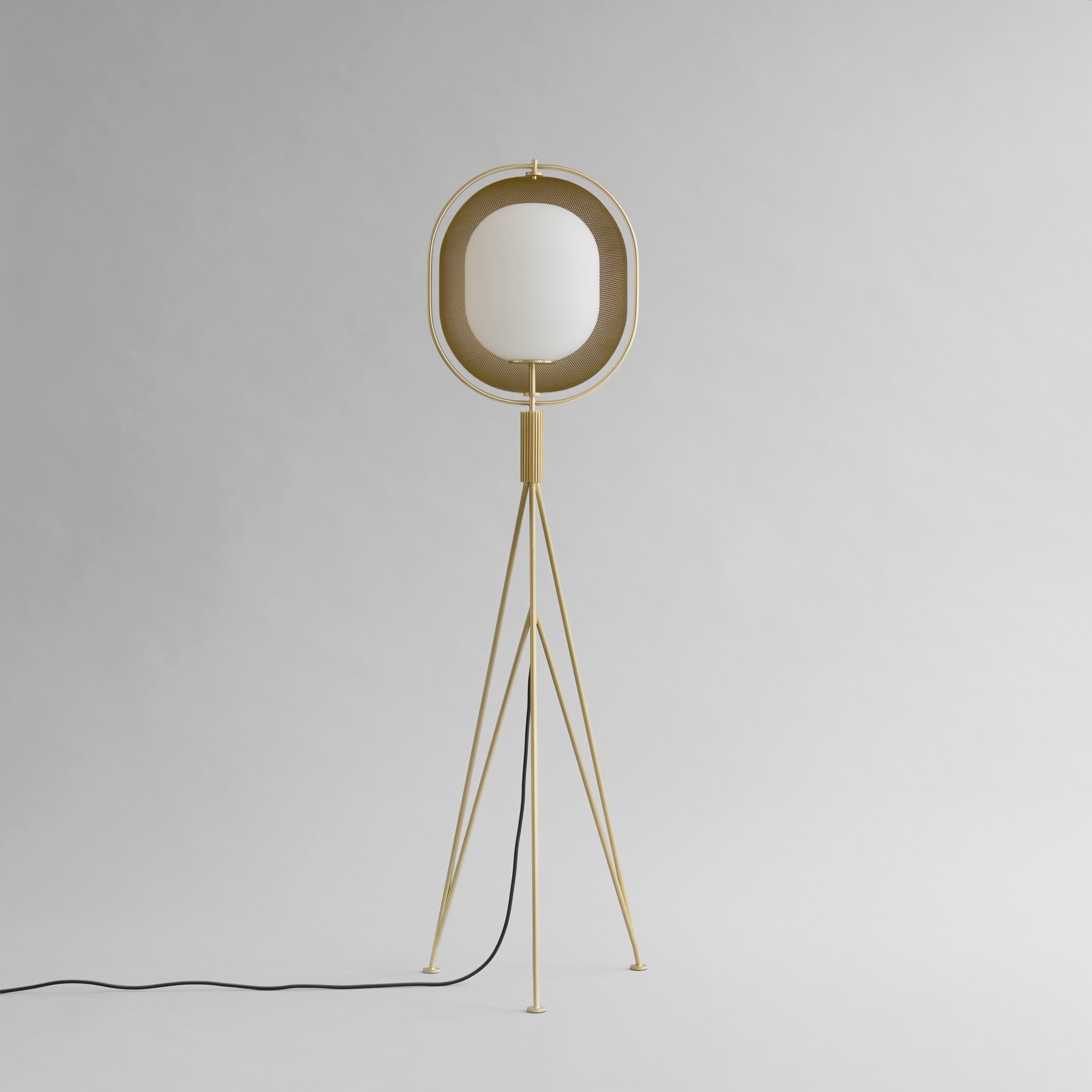 Напольный светильник Pearl — это единство традиций и современного дизайна, дань уважения вневременной эстетике японских фонарей. Опаловый стеклянный шар с мягким внутренним светом частично заключен в тонко перфорированную металлическую оправу, создающую замысловатые узоры света и тени, которые меняются при каждом повороте. Благодаря своей гибкости, вращающаяся решетка позволяет формировать одновременно камерное и выразительно-художественное освещение.