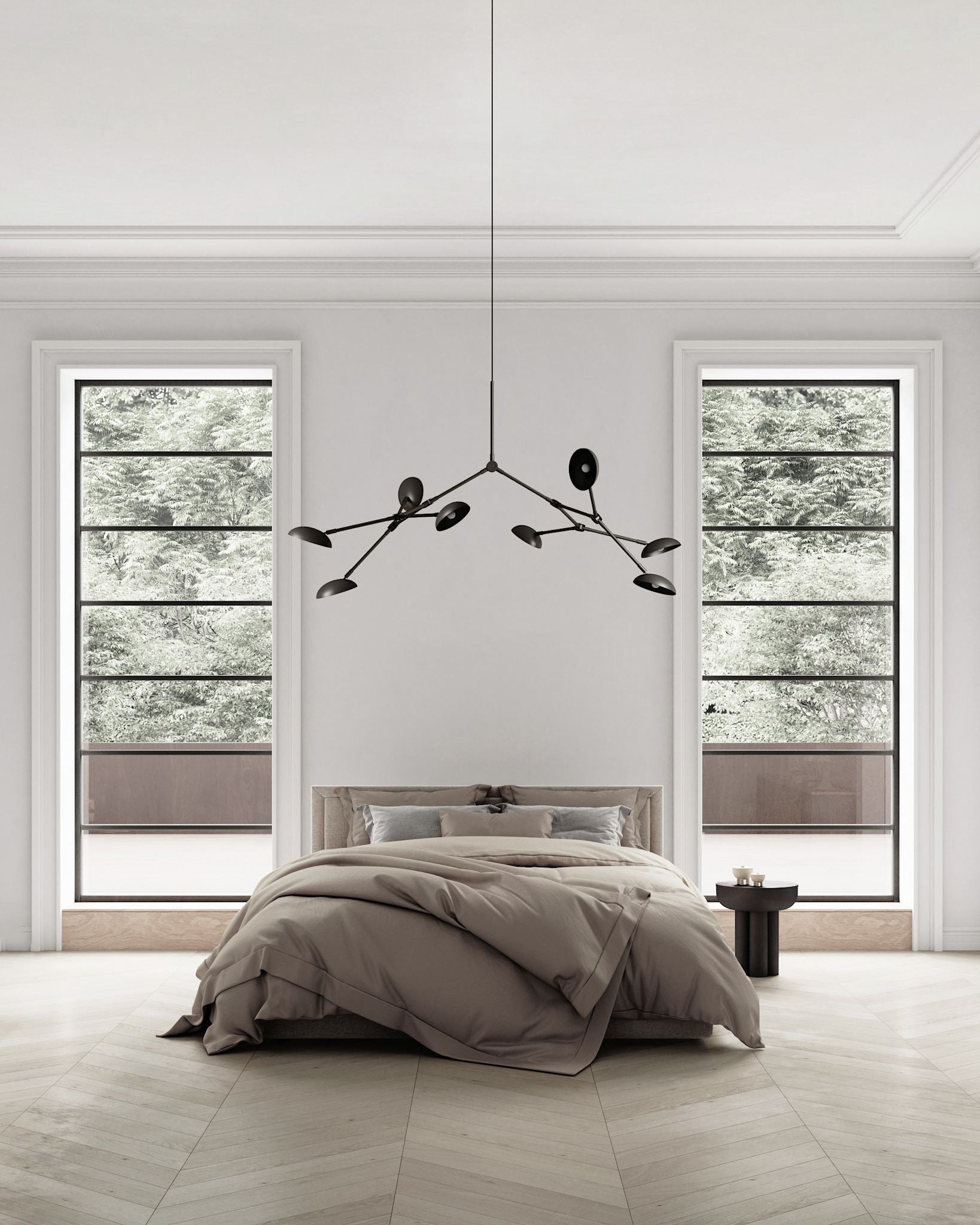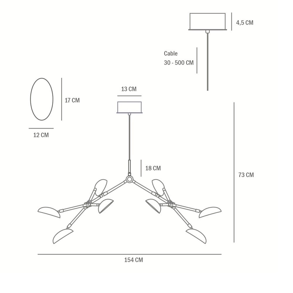 Вы почти чувствуете движение люстры Drop, словно это живая скульптура, легко адаптирующаяся к окружающему пространству. Впечатляющий дизайн преображает интерьер элегантностью и мастерством исполнения. Эстетика модернистского освещения 1950-х годов актуализирована под современность: плавная, органичная форма оживает благодаря 14-ти регулируемым плафонам, позволяя создавать динамичные композиции с разными углами наклона и поворота.