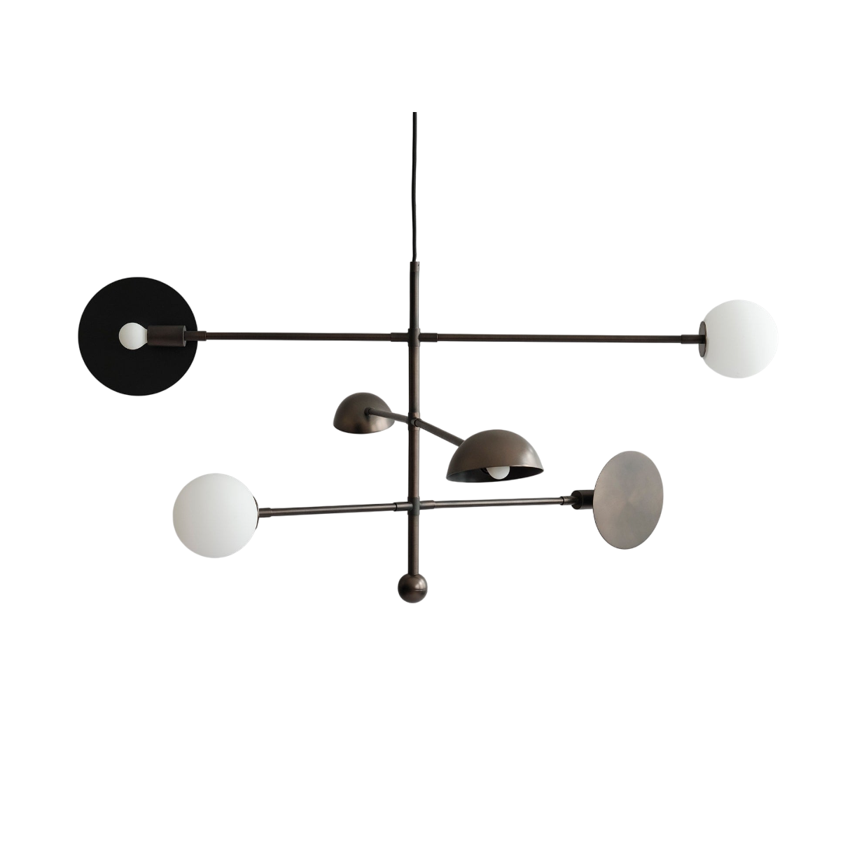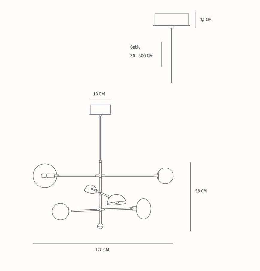 Люстра Sahn (в переводе с японского «три») вдохновлена футуристичным дизайном 1970-х годов и космической эстетикой. Три различных абажура дают уникальное освещение и добавляют элемент игры и творчества. Конструкция адаптивна и универсальна: каждая планка и абажур могут поворачиваться и вращаться, позволяя создавать динамичное скульптурное освещение, подходящее именно Вашему пространству.