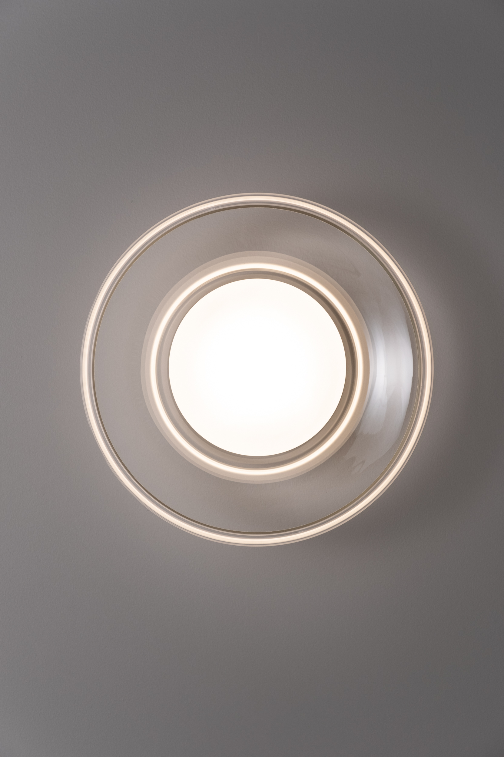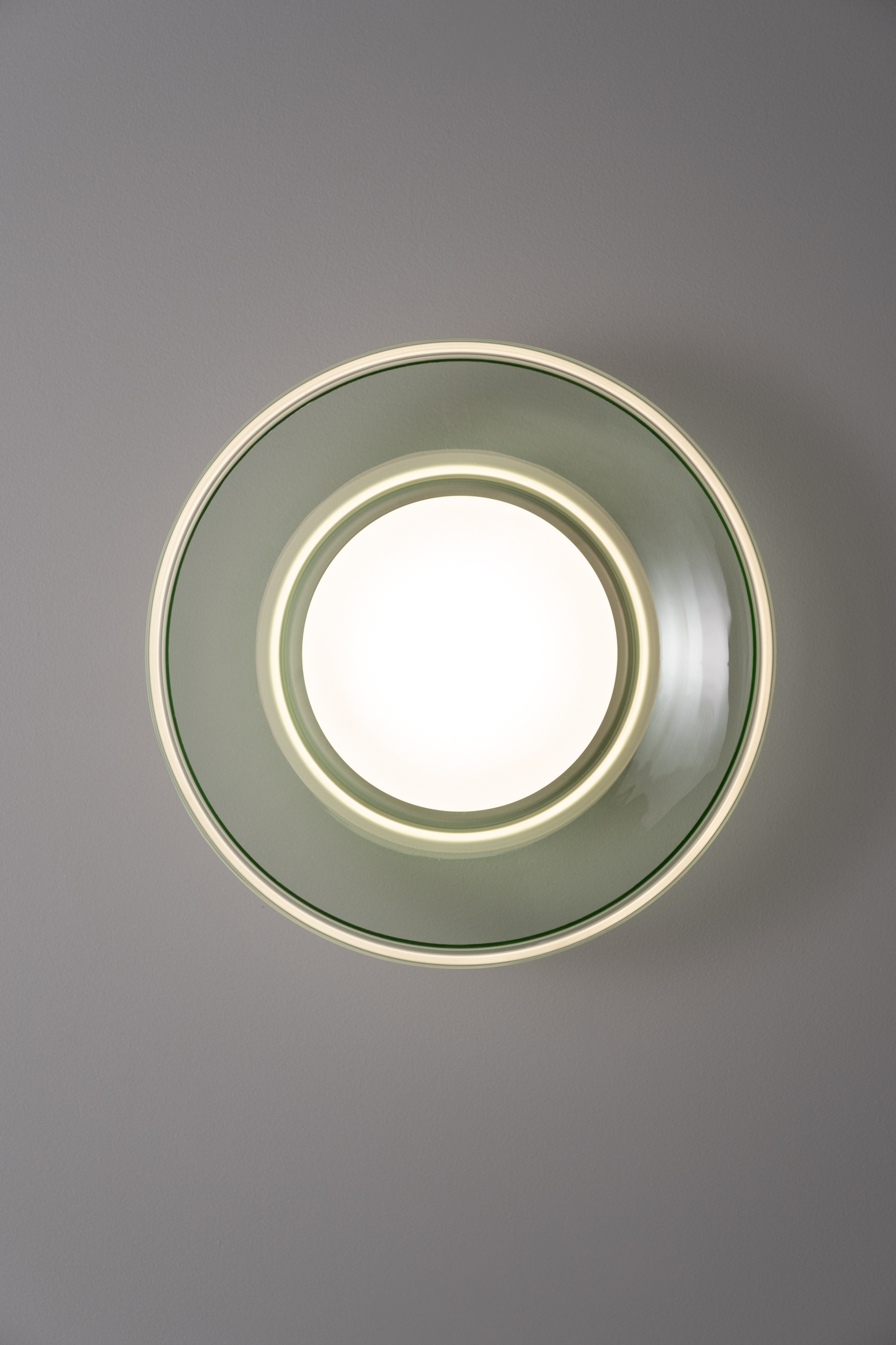 Настенно-потолочная серия Pace представлена светильниками в прозрачной, светло-зеленой и коричневой отделке. Семейство Pace, помимо настенно-потолочных, включает подвесные, настольные и напольные светильники.