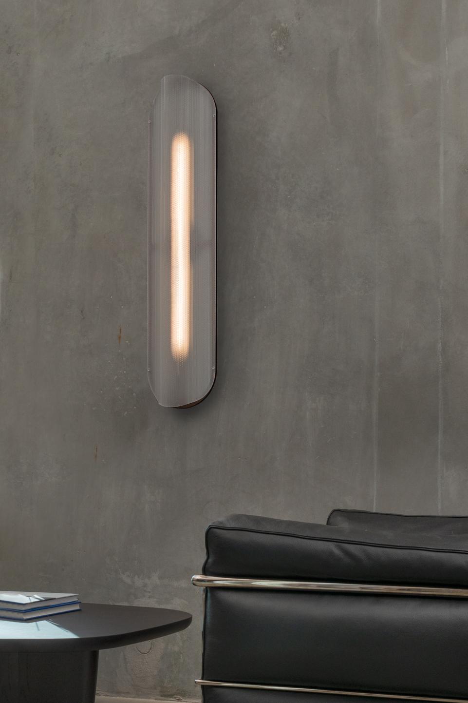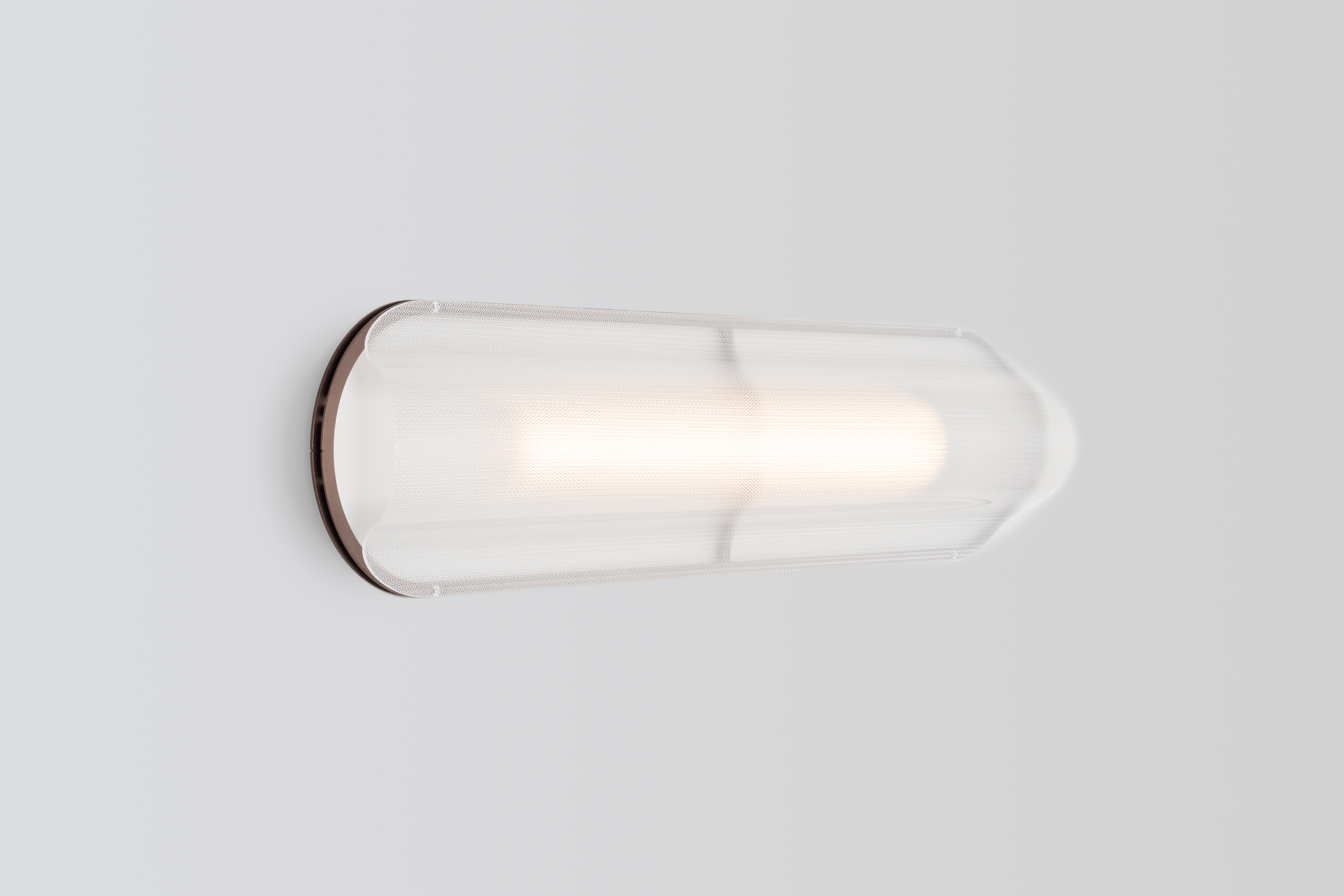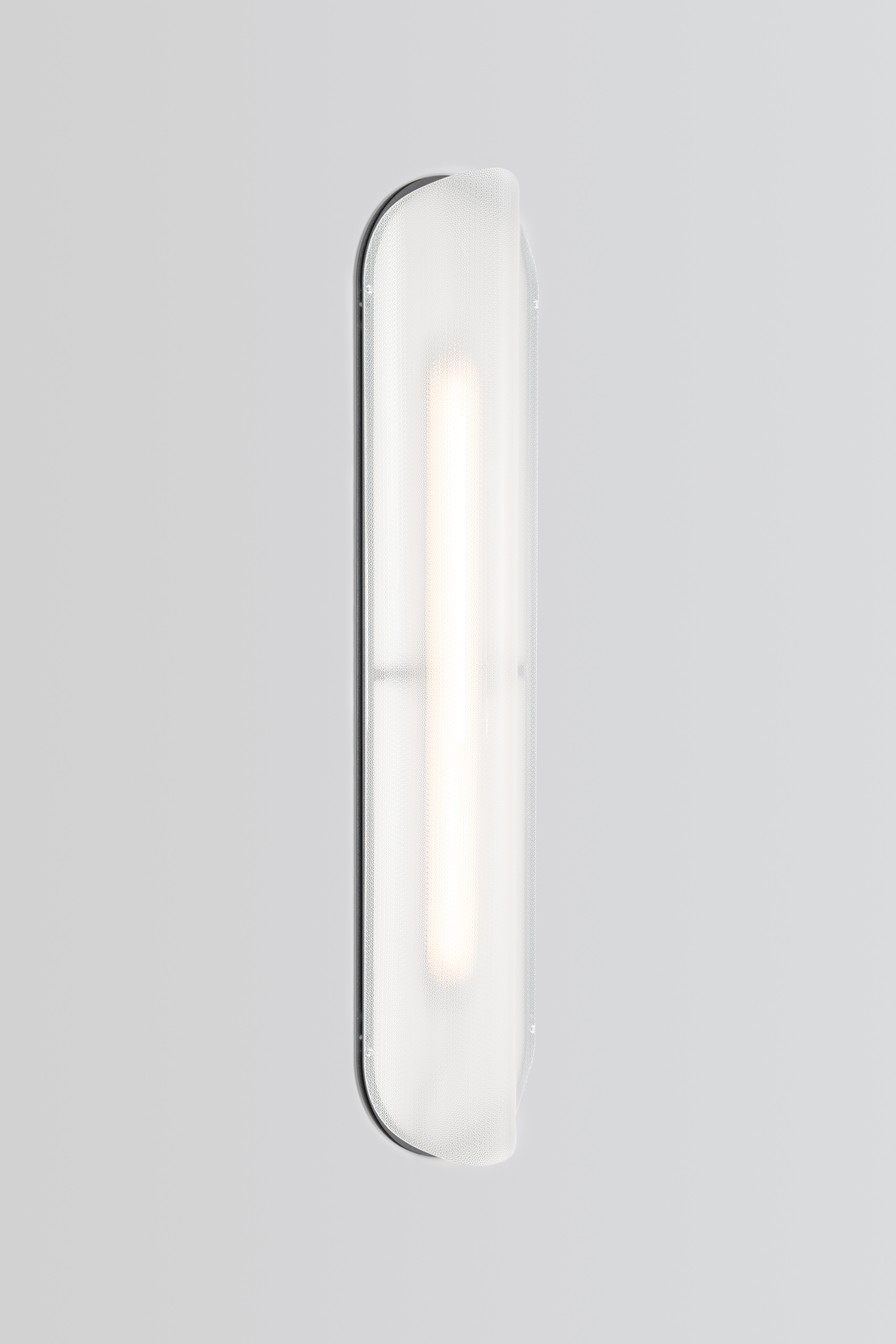 Настенно-потолочный светильник Vale гармонично сочетает в себе утилитарность и изысканность. Прозрачный текстурированный корпус, изготовленный методом термоформовки, выходит за границы каркаса, создавая объем и особую визуальную эстетику. Вдохновлённый основными законами геометрической оптики, проект Vale создает динамический свет, проходящий через призму и создающий ощущение вечного движения.