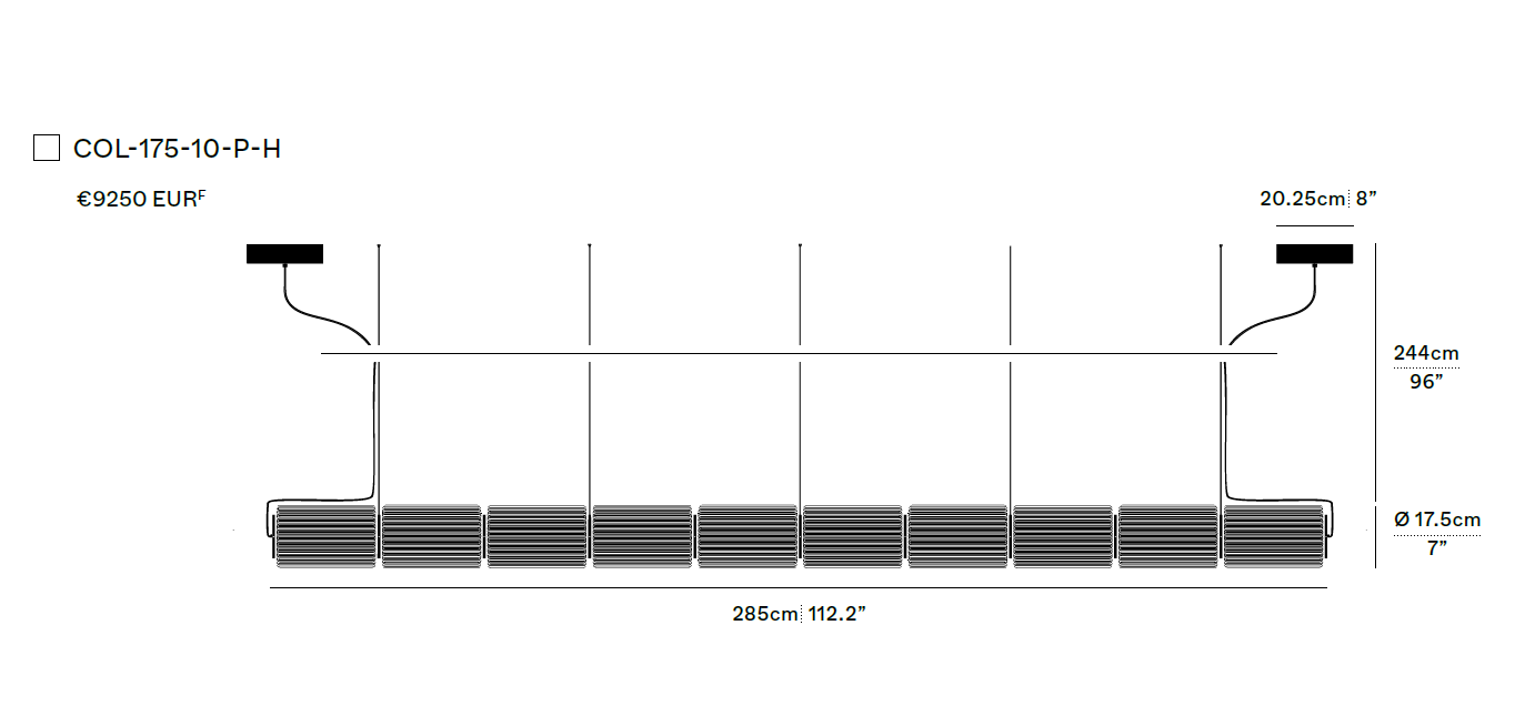 На выбор представлены три базовые отделки: угольный (Carbon), слоновая кость (Ivory) и янтарный (Amber). Доступны версии с поддержкой фазового диммирования, протоколов 0-10V и DALI. Стоимость указана за горизонтальную подвесную систему Column из 10-ти элементов диаметром 17.5см в янтарном корпусе.