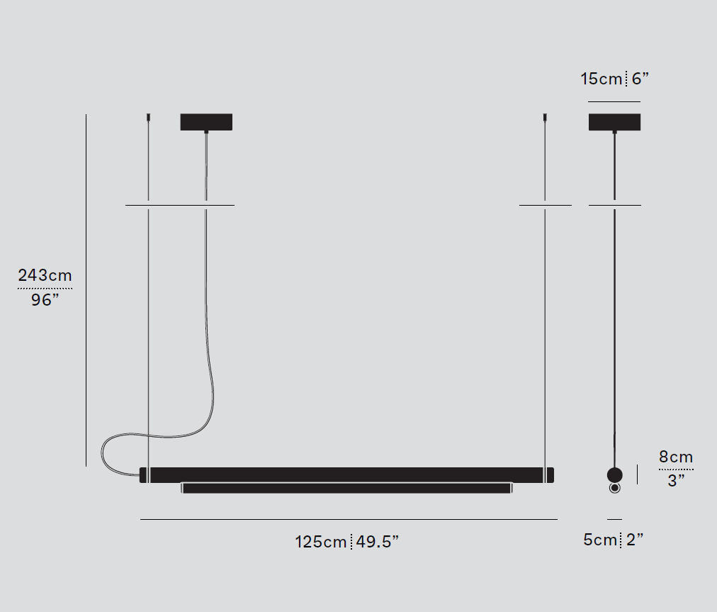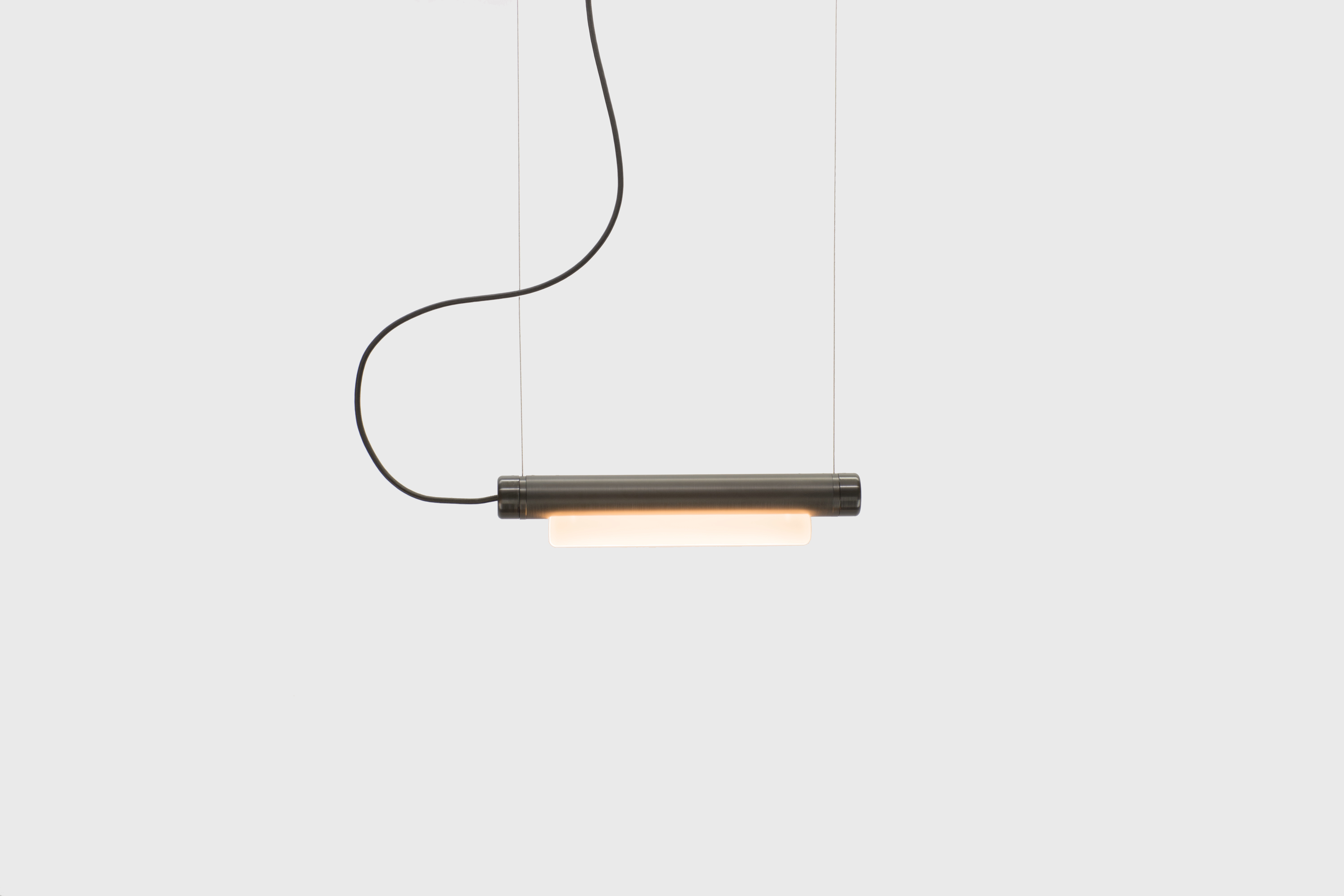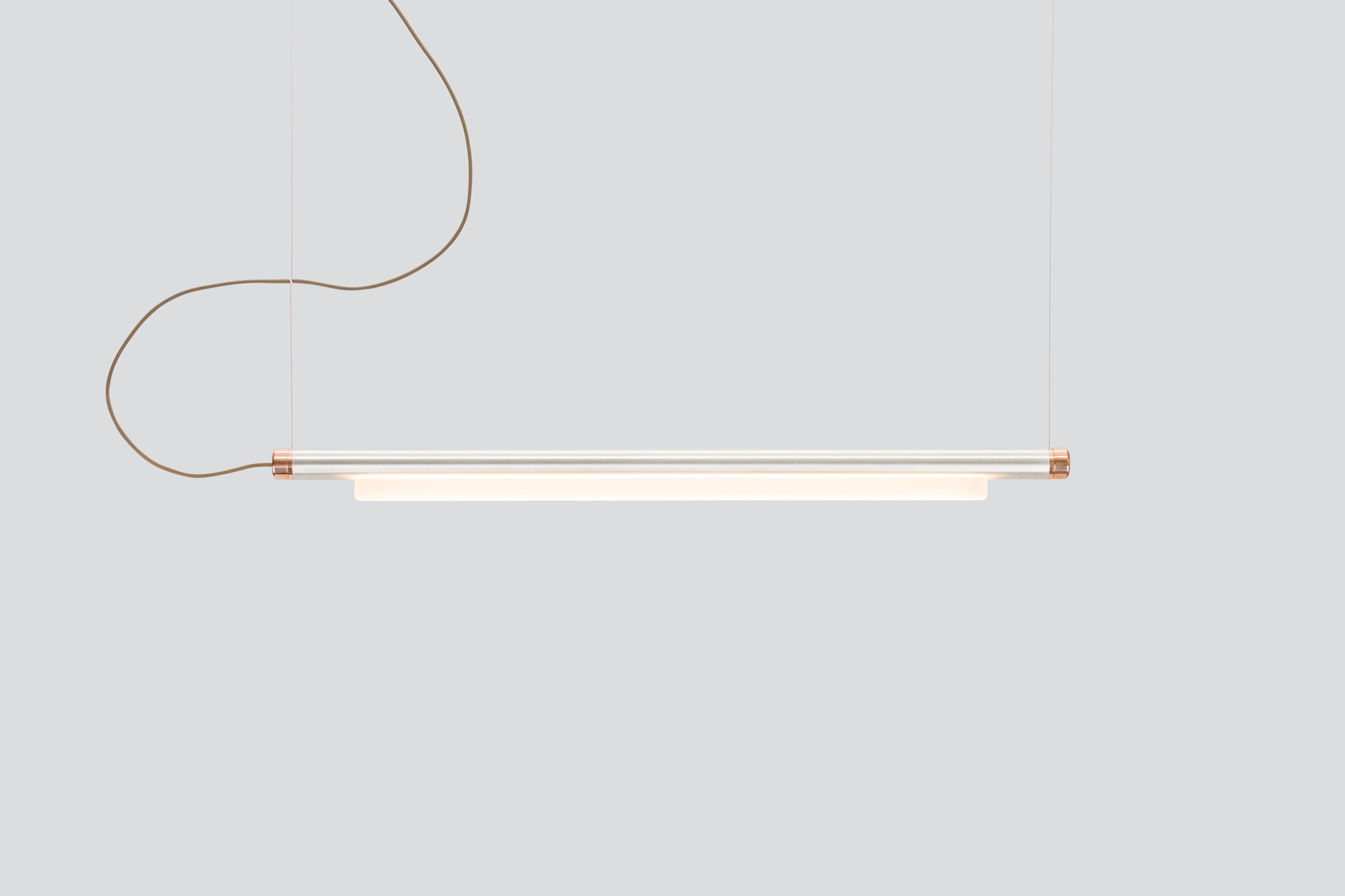 Эффектный подвесной линейный светильник Pipeline располагается параллельно поверхности на тонких авиационных тросах толщиной всего 1мм, создавая иллюзию парения в воздухе. Широкий горизонтальный луч света, исходящий от LED-модуля, смягчается до равномерного уютного свечения благодаря опаловому рассеивателю. Светильники Pipeline можно подвешивать строго горизонтально или под углом, по одному или несколько. Также возможно масштабирование и выстраивание сложных геометрических LED-конструкций.