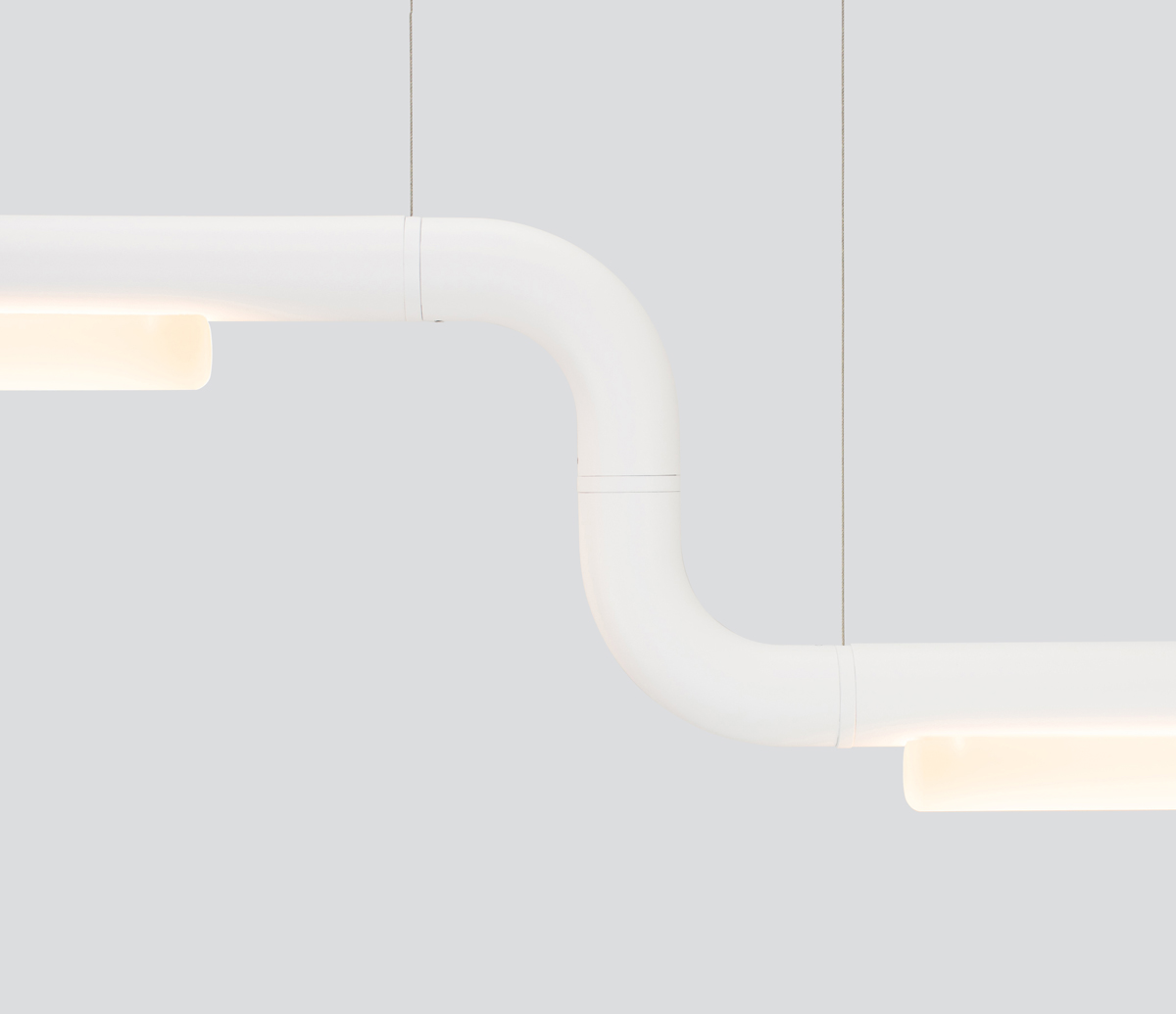 Линейка фигурных светильников SM наглядно показывает, как с помощью комплекта деталей можно создать палитру конфигураций: с S-образными изгибами, петлями и более крупными угловыми конструкциями, отвечающими декоративно-функциональным запросам конкретного интерьера.