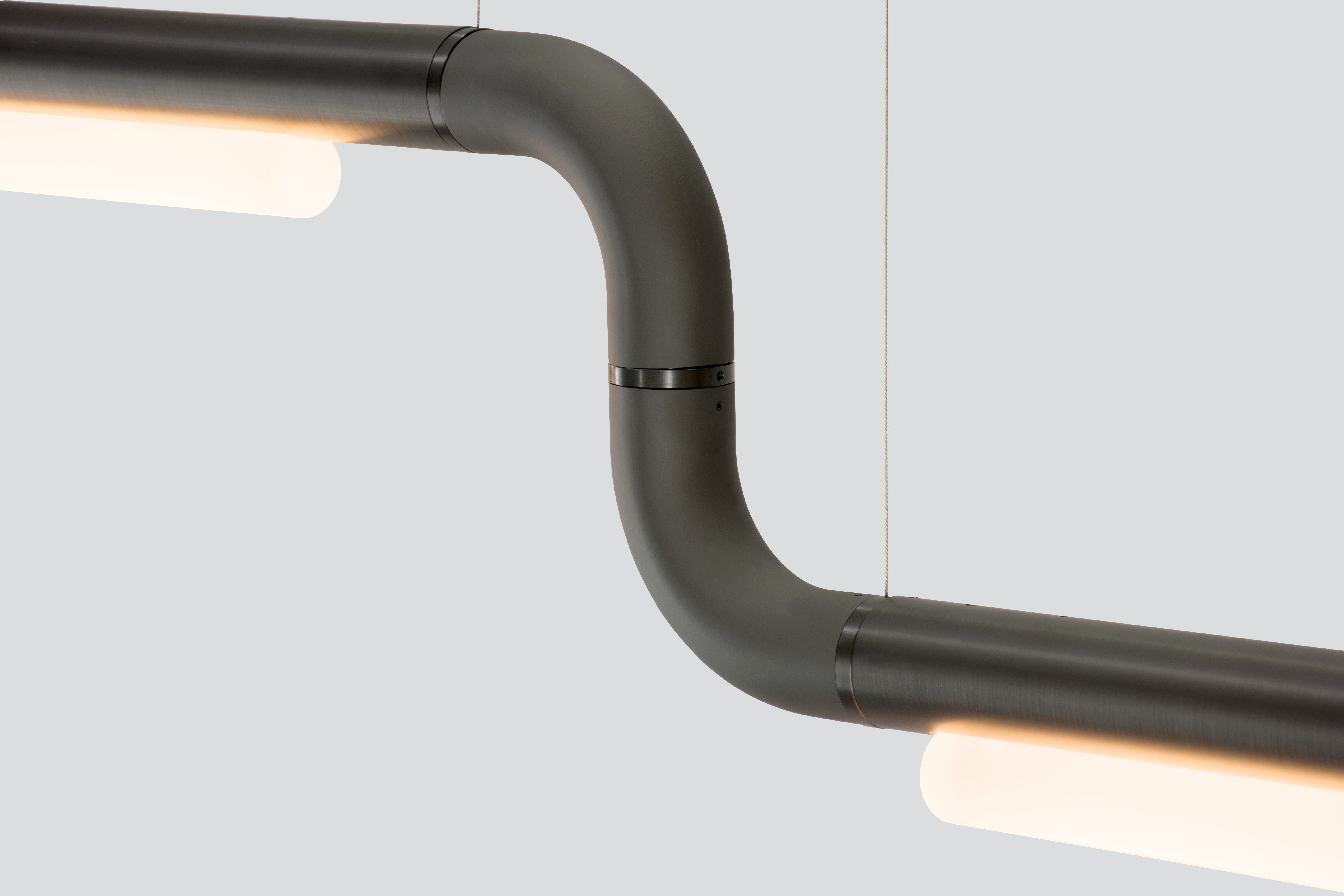 Серия Pipeline начинается с линейного светодиодного светильника, элегантного в своей простоте. Но отличает его то, как виртуозно одиночный светильник с помощью модулей обретает новую геометрию и масштаб. Благодаря инженерному подходу и адаптивности дизайна, Pipeline смело приглашает к экспериментам по уникализации пространства.