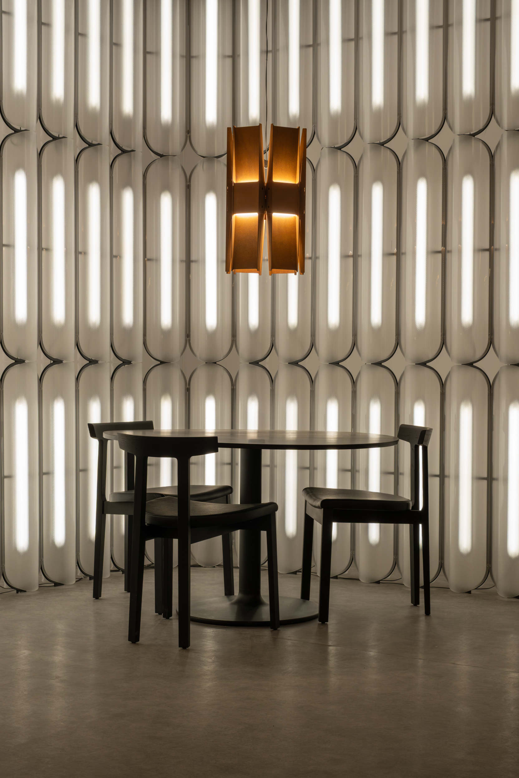 Серия подвесных светильников Vale создает изысканную кристаллизованную атмосферу. Волнообразный профиль призматического рассеивателя преобразует излучаемый свет в эффектный градиент. Технически выверенная конструкция оптимальна благодаря многонаправленному свечению. Цель проекта — предложить масштабируемый светильник для разных пространств: от одиночного до более сложных модульных инсталляций. Система Vale подвешивается горизонтально или вертикально. Благодаря стыковому соединению «край-к-краю» (side-to-side) или «торец-к-торцу» (end-to-end) можно создавать различные комбинации.