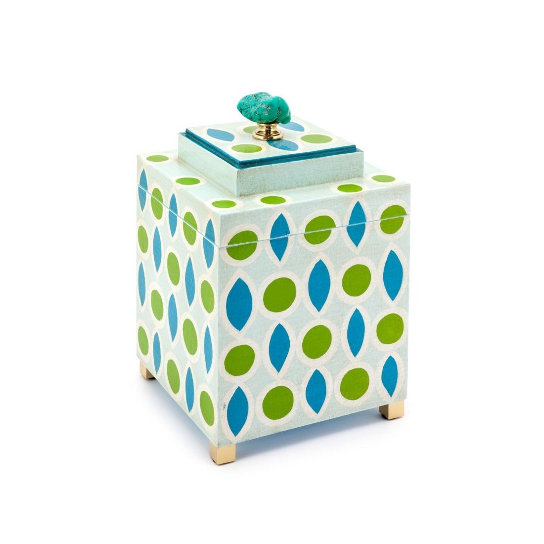 Деревянная шкатулка Abhika Krizia '70 с декором 70-х годов, крышкой с декоративным камнем и металлическими ножками золотого цвета.