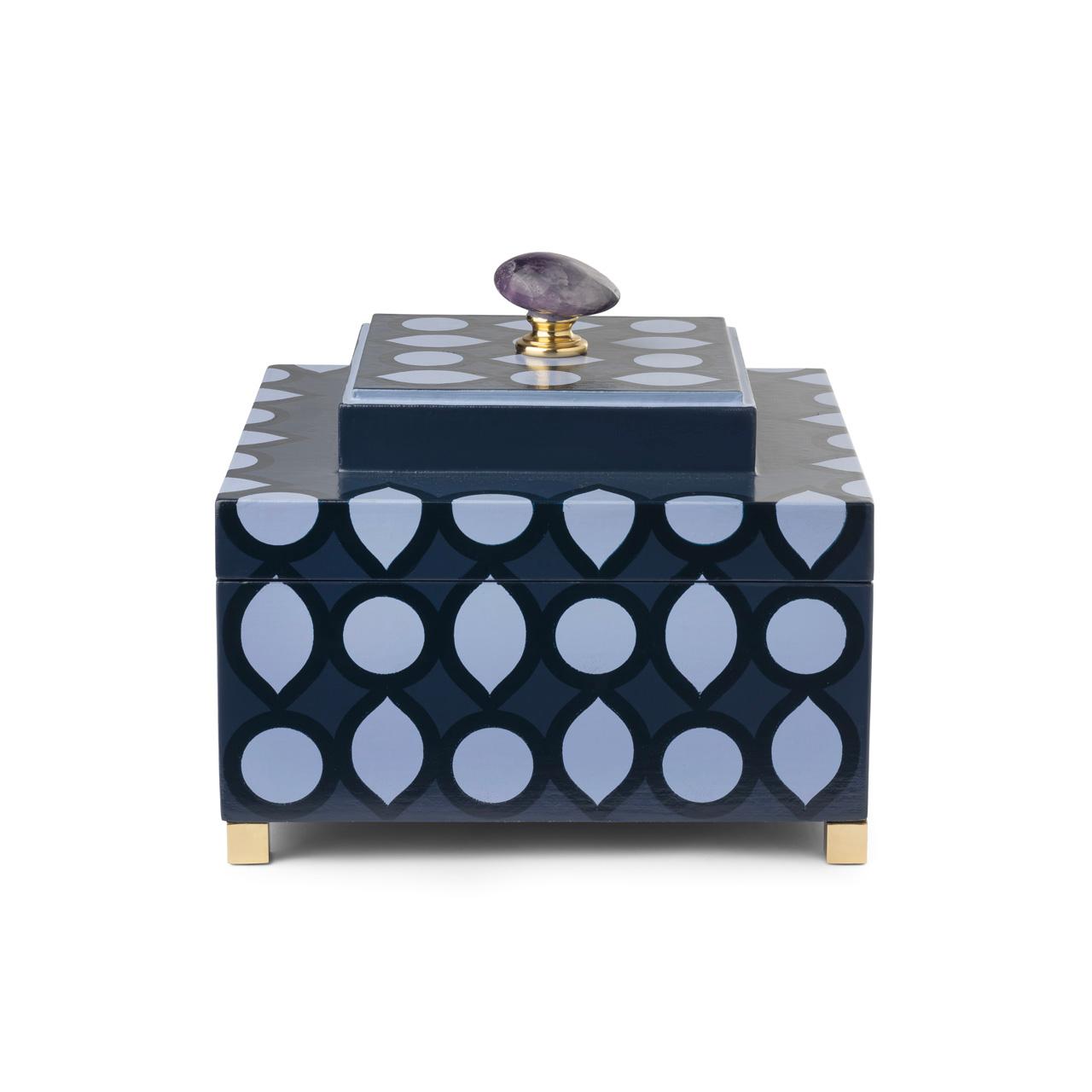 Деревянная шкатулка Abhika Krizia Violet с декором 70-х годов, крышкой с декоративным камнем и металлическими ножками золотого цвета.