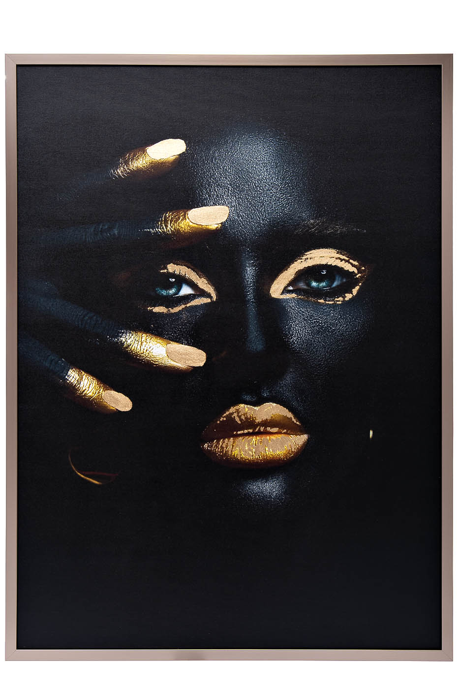 89VOR-DARKGIRL-1 Холст "Темная девушка"120х80см,багет латунь, поталь. Материал: холст натуральный, багет "225.M20.258", роспись поталь, лак, крепеж.