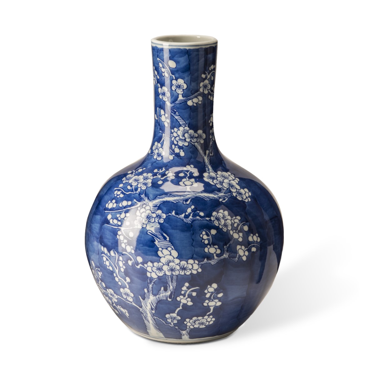 Ваза Pols Potten Blossom Small из глазурованного фарфора, декорированного вручную. Только фон, окрашенный в синий цвет, подчеркивает узор цветущих ветвей. Мастерство в лучшем виде.