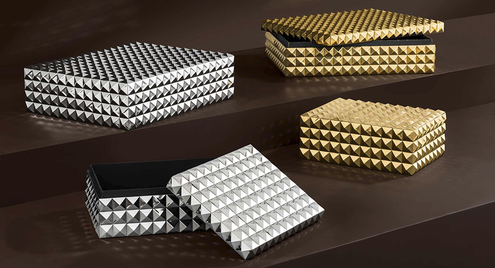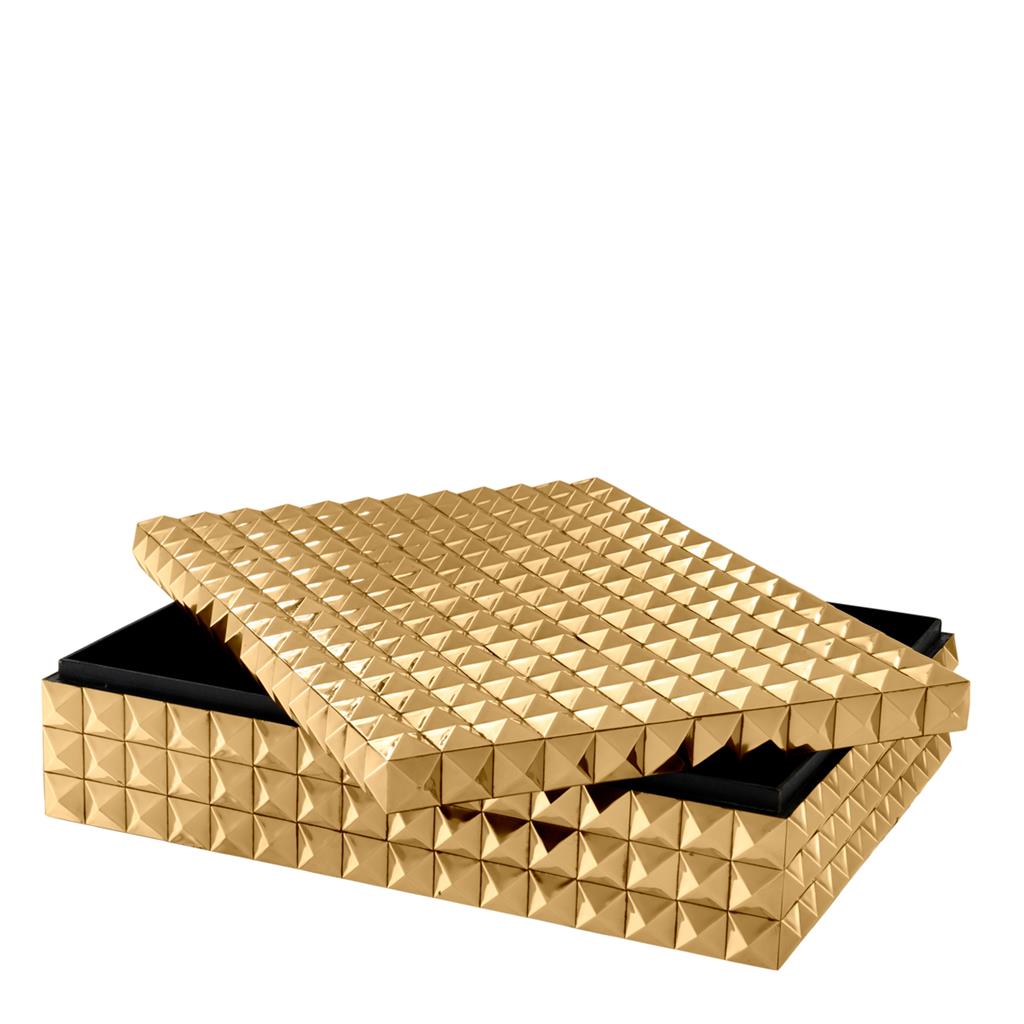 Прямоугольная шкатулка Box Vivienne L. Стильный аксессуар выполнен из металла золотого цвета с фактурной поверхностью.
