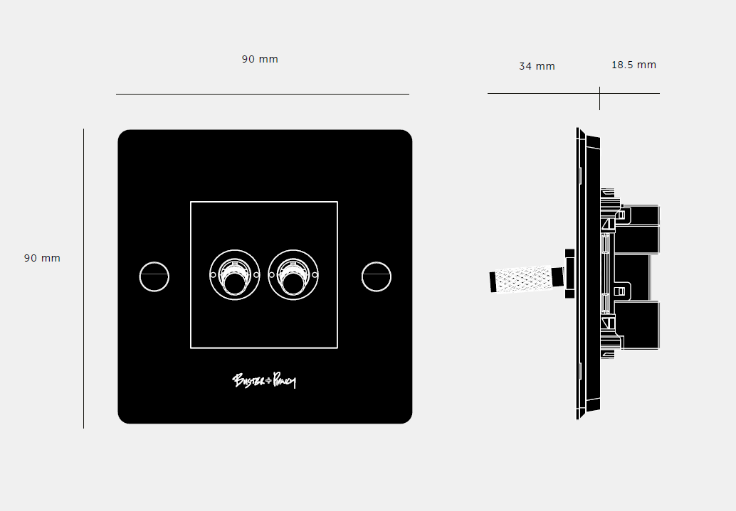 Цельнометаллический двойной тумблерный переключатель евростандарта с алмазной накаткой и логотипом Buster and Punch, белого цвета. Дополнен плоской металлической пластиной и фирменными шлицевыми винтами Buster and Punch. Доступен в пяти вариантах отделки: черный, белый, латунный, серо-стальной, дымчато-бронзовый. Рекомендуется к использованию с диммерами, розетками и USB-портами Buster and Punch для максимального комфорта и функциональности.
