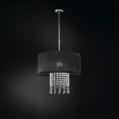 Подвесной светильник из коллекции Saint Vincent с текстильным плиссированным абажуром черного цвета и подвесками из прозрачного хрусталя Swarovski Spectra.