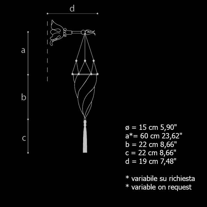 Бра конической формы в восточном стиле. Бра крепится к настенной арматуре на тросике и шелковых подвесах. Высота регулируется. Материал светильника — муранское стекло бежевого цвета, с расписными узорами, в металлической оправе золотистого цвета. Декор — шелковая кисть со стеклянными бусинами. Под заказ возможны другие варианты цвета стекла (как на фото).