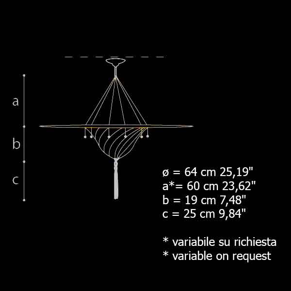 Подвесной светильник в восточном стиле выполнен полностью из муранского стекла белого цвета с расписными узорами. Светильник крепится к основанию потолка тросиками. Высота регулируется. Форма светильника — круглый диск и плафон конической формы. Декор —шелковые кисти и нити со стеклянными бусинами. Под заказ возможны другие варианты цвета стекла (как на фото).