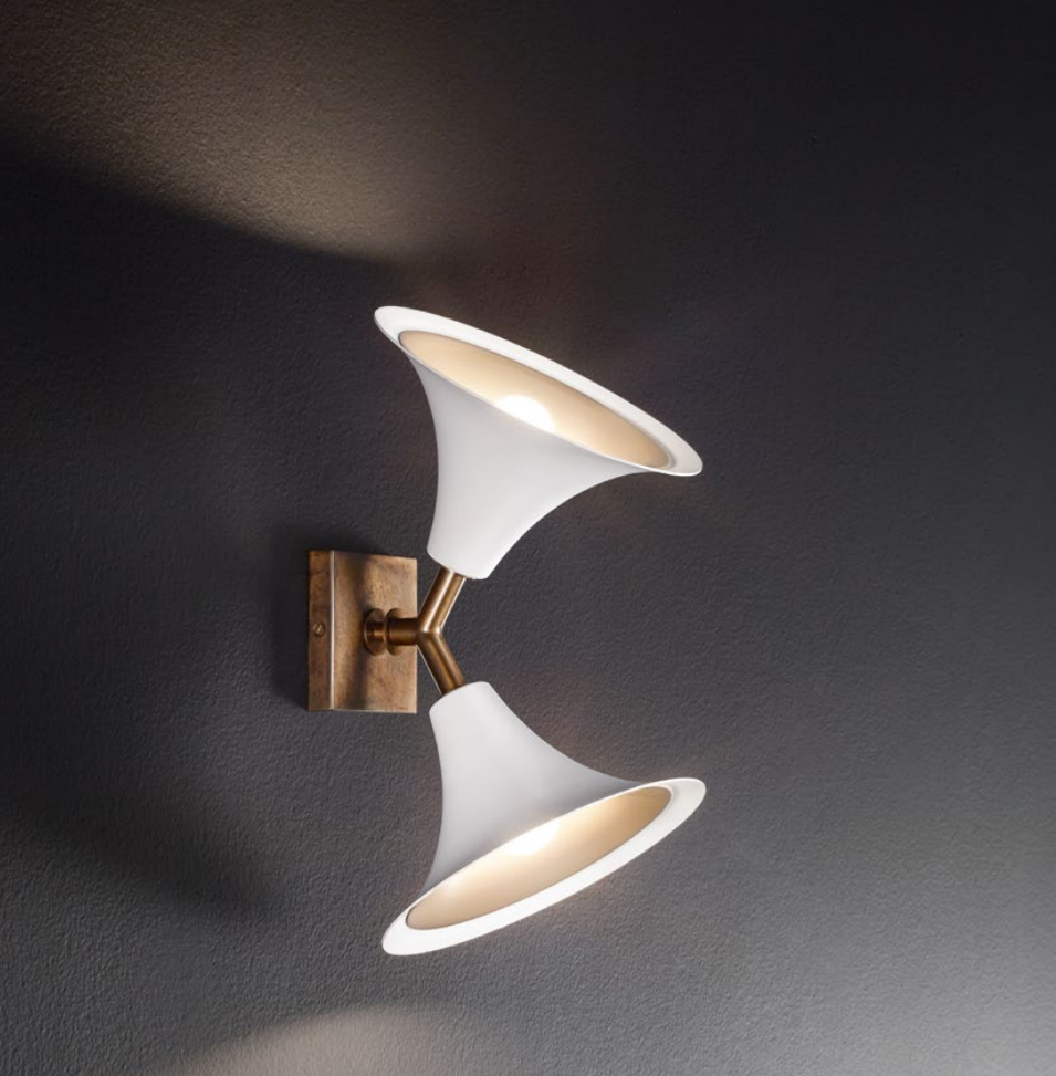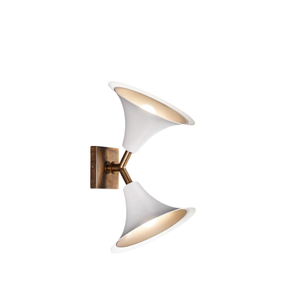Настенный светильник 3008/2/AP от Arizzi с металлическим каркасом и двумя абажурами в форме колокольчиков создает гармоничный образ и уравновешивает интерьер. Благодаря контрасту бронзовому основанию и открытым белым плафонам с внутренней песочной отделкой, светильник смотрится ненавязчиво эстетично и украсит любое настенное пространство. Актуальный минималистичный дизайн, выдержанный в стилистике модерна.