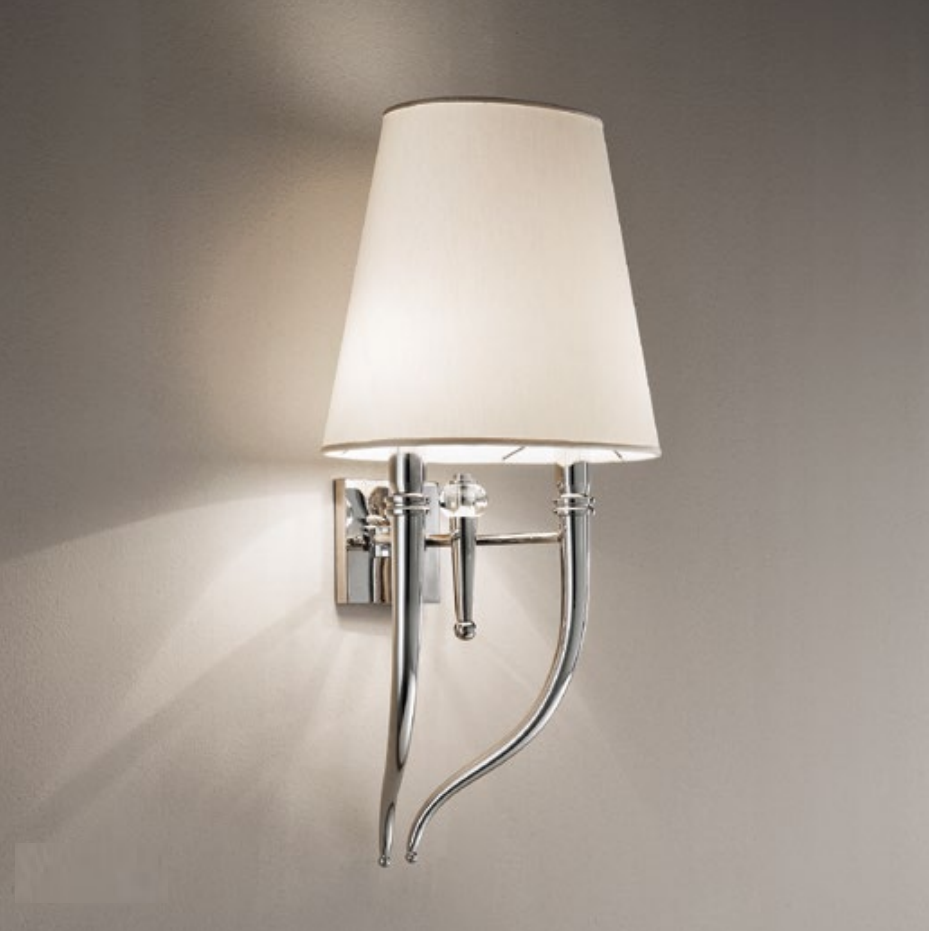 Настенный светильник коллекции 806 от Arizzi на металлическом основании с классическим текстильным абажуром шинет создает настоящий уют с ноткой сдержанной роскоши. Прекрасный классический вариант как для гостиных, кабинетов или библиотечных залов, так и для современных коммерческих интерьеров гостинично-ресторанного сектора. На выбор доступны различные отделки согласно каталогу.