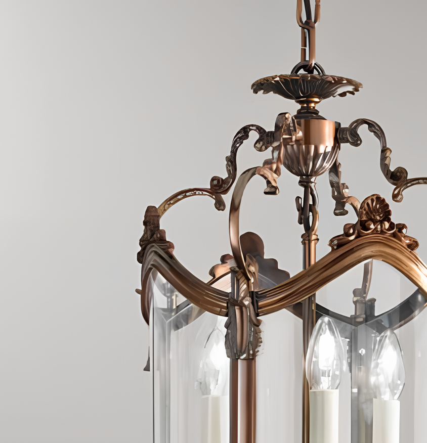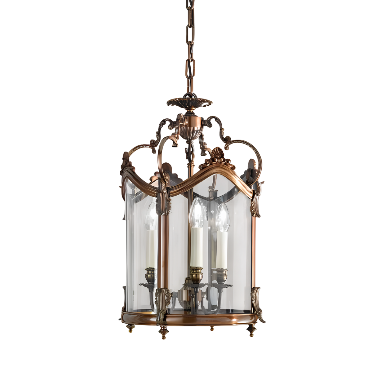 Изысканный подвесной фонарь в цилиндрическом корпусе из литой латуни со стеклом, в отделке античной (патинированной) бронзой. Дизайн с венцом и художественным витым узором, навеянный колониальным стилем с нотами средиземноморского колорита. С возможностью диммирования. Прекрасное дополнение интерьера, требующего уютного мягкого света с ретро-акцентом. Светильник оснащен тремя патронами под лампу Е14, максимум 42Вт каждая.
