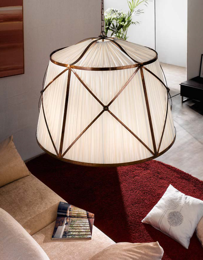 Подвесной светильник Arizzi станет украшением как классического, так и современного интерьера. Абажур светильника из плиссированной ткани цвета слоновой кости, металлический каркас бронзового цвета.
