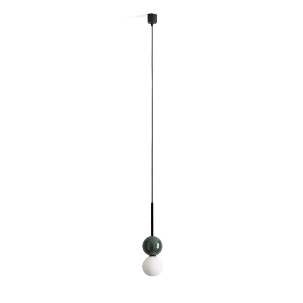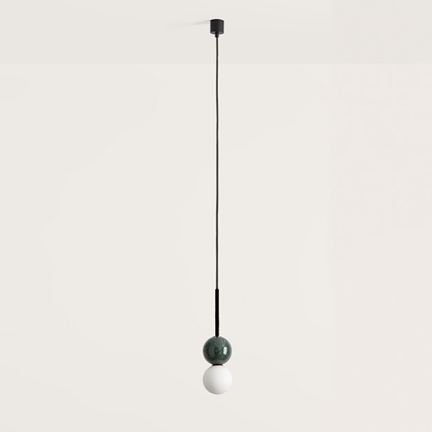 Подвесной светильник Aromas Del Campo из коллекции Dalt. Рассеиватель из выдувного опалового стекла, декоративная отделка из металла в матовом черном, мрамор черного цвета. Максимальная длина кабеля 300см.
