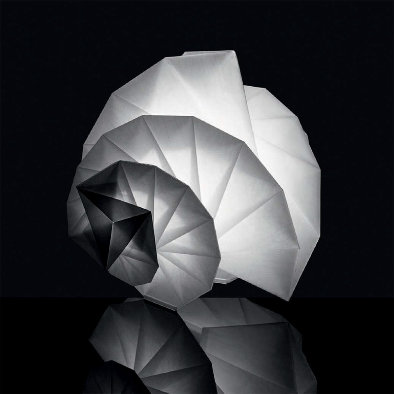 Настольная лампа Mendori выполнена по уникальной складной технологии из ткани цвета слоновая кость. Имеет нестандартную форму заркученной спирали, однако конструкция достаточно прочная. Светодиоды включены в комплект, светильник с диммером. Дизайн Issey Miyake & Reality Lab.