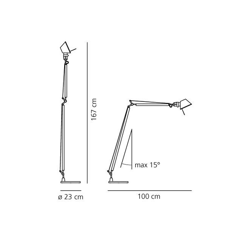 Основание для торшера Tolomeo Lettura из полированного алюминия, ?23см. Структура (корпус) светильника комплектуется отдельно: варианты (A013900, A013100, A014600, A014610). Дизайн Michele De Lucchi, Giancarlo Fassina.