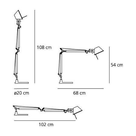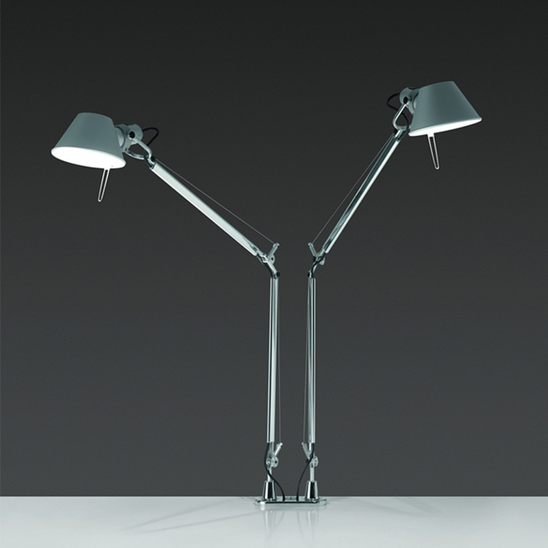 Корпус настольной лампы Tolomeo mini tavolo — Halo Aluminium. Основание и суставы корпуса из полированного алюминия, рассеиватель из анодированного матового алюминия. Система пружинной балансировки. Регулируемые размеры в зависимости от положения. Крепежные основания A008600, A004200, A004100, A004300, A025150 комплектуются отдельно. Дизайн Michele De Lucchi, Giancarlo Fassina.