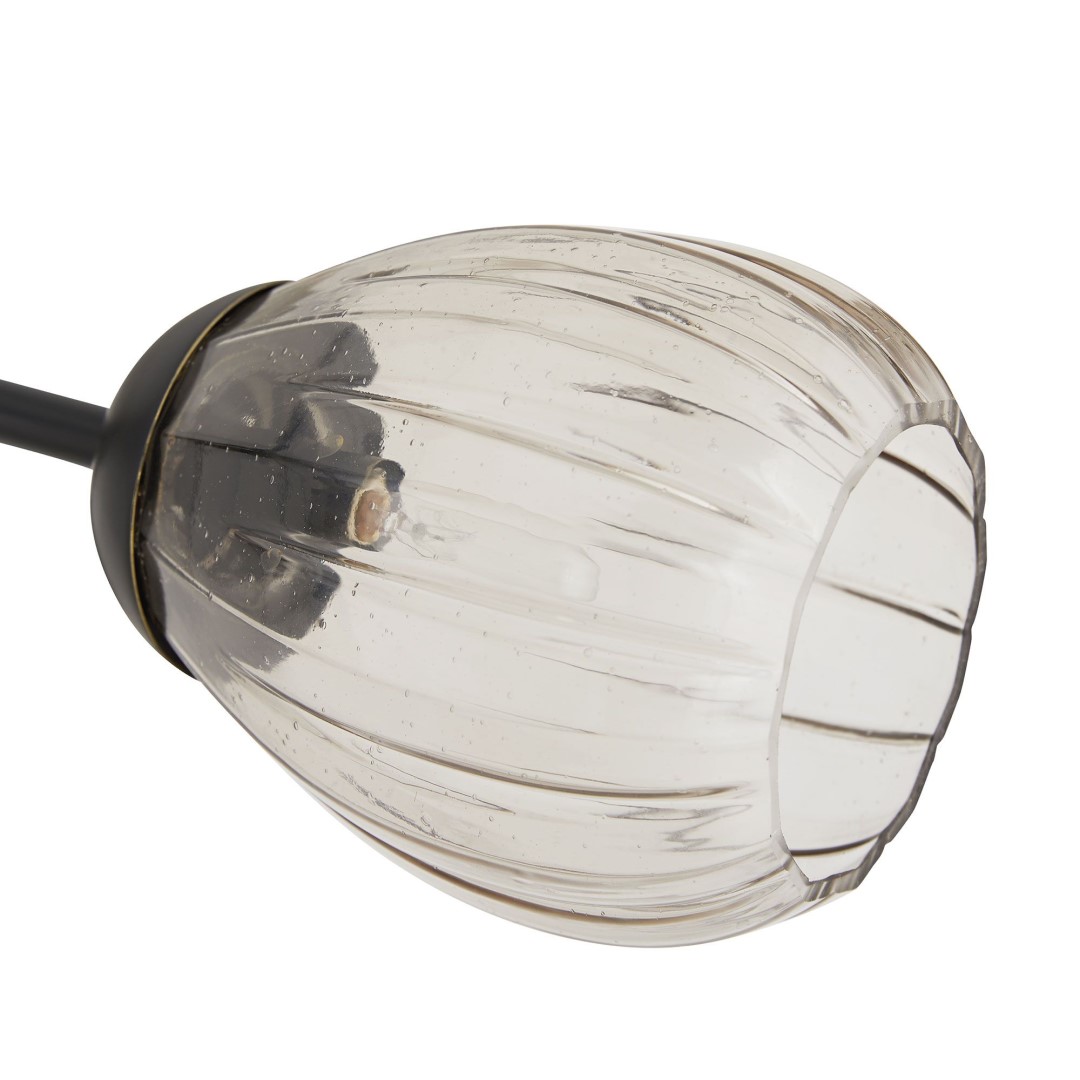Люстра Arteriors Smyth на арматуре бронзового цвета с дымчатыми рифлеными стеклянными плафонами. Несколько ветвей создают современную бронзово-стальную конструкцию, придавая ей линейную и угловатую форму. Каждый источник света можно повернуть, например, чтобы сделать форму более линейной. Возможна установка дополнительных трубок.