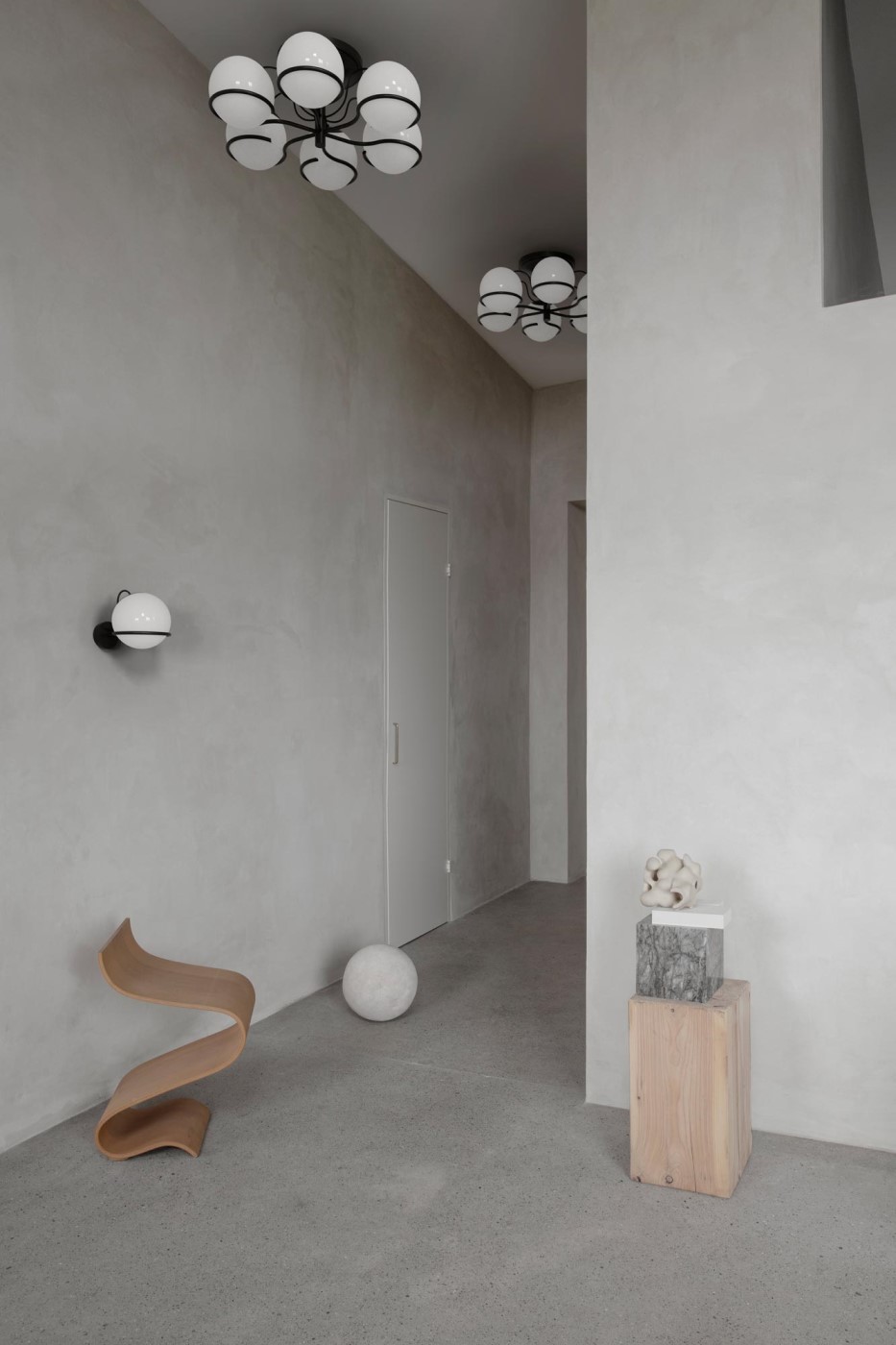 Настенный светильник Astep Le Sfere 238/1 black, дизайна Джино Сарфатти. Идея этого светильника, изначально носившего название Le Sfere появилась из света Луны и желания создать красивую интерпретацию идеальной светящейся сферы. Небо и небесные светила настолько вдохновляли Сарфатти, что он даже мечтал стать авиационным инженером. Сфера из выдувного опалового стекла удерживается алюминиевым кольцом. Идея оказалась настолько удачной, что из единичной модели выросла в целую коллекцию из 24 предметов. Сегодня Le Sfere под названием 2109 выпускается брендом Astep, который создал внук Джино Сарфатти — Алессандро Сарфатти.