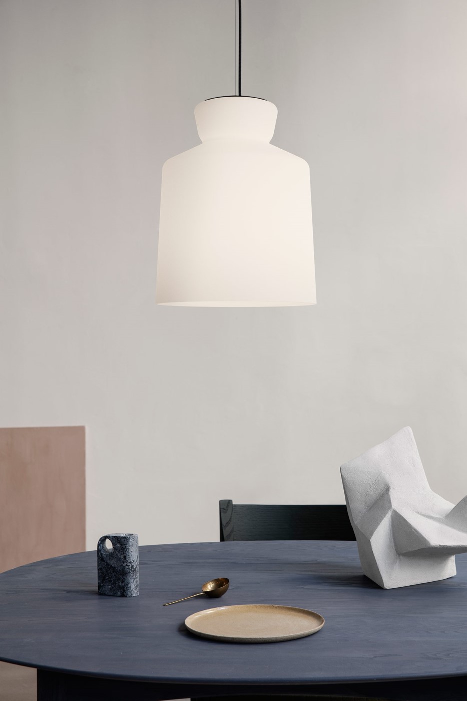 Подвесной светильник SB Cinquantotto доступен в двух размерах. Первоначальный размер диаметром 32 см производит сильное впечатление в комнате и является идеальным компаньоном для обеденного стола, в то время как версия меньшего размера диаметром 20 см имеет немного более скромное выражение и объем, но имеет те же самые. вневременные качества.