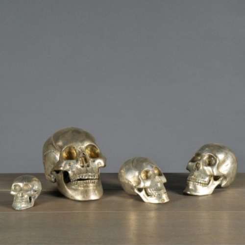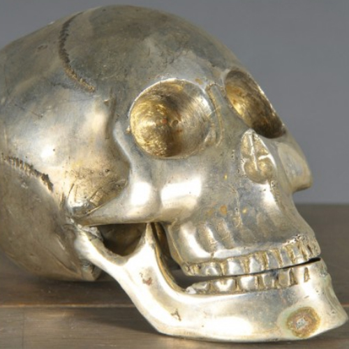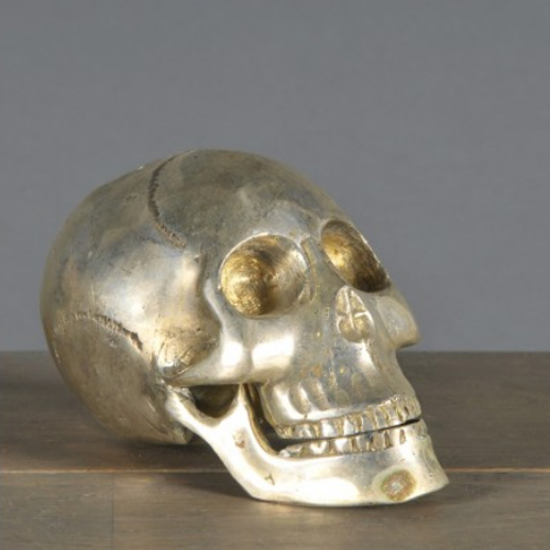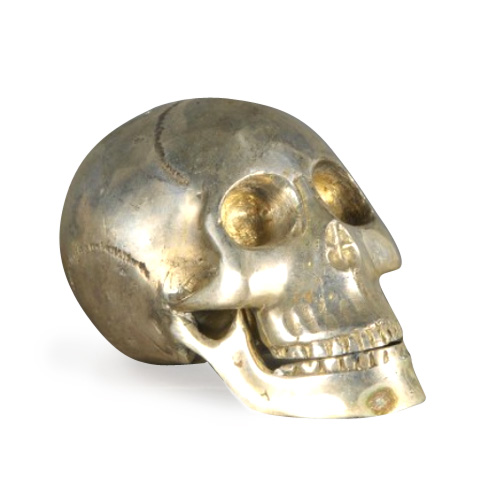 Декоративная статуэтка Iron Skull в виде черепа из металла, окрашенного в серебряный цвет. Человеческие черепа являются любимой темой "Memento Mori", художественного жанра, который стремится напомнить людям, что они смертны.