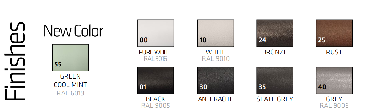 Корпус выполнен из литого алюминия с антикоррозийным УФ-стабилизированным порошковым покрытием, предлагается в 9-ти цветах для лучшего соответствия проектным запросам. Светодиодный модуль — опаловый поликарбонат.