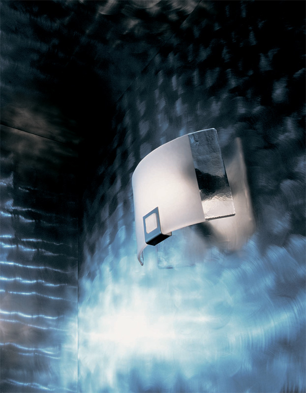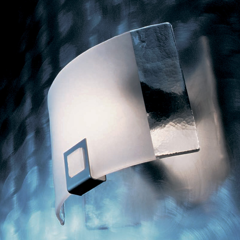 Настенный светильник из коллекции RIO на металлическом креплении. Плафон выполнен из матового белого стекла. На плафоне вставка в виде квадрата белого цвета. Дизайн: M & M.