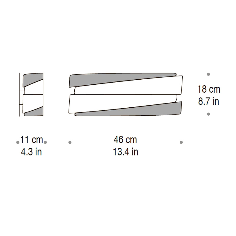 Настенный светильник из коллекции RIFLESSI на металлическом креплении. Плафон выполнен из полос матового белого (по центру) и голубого стекла (сверху и снизу). Дизайн: M & M.