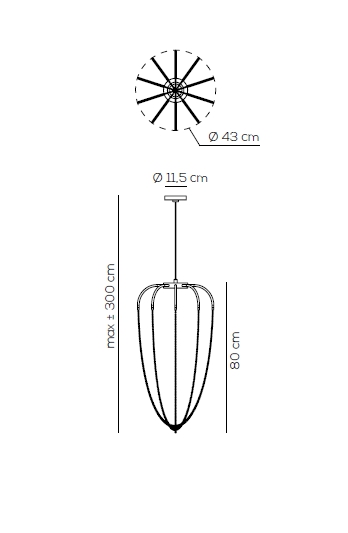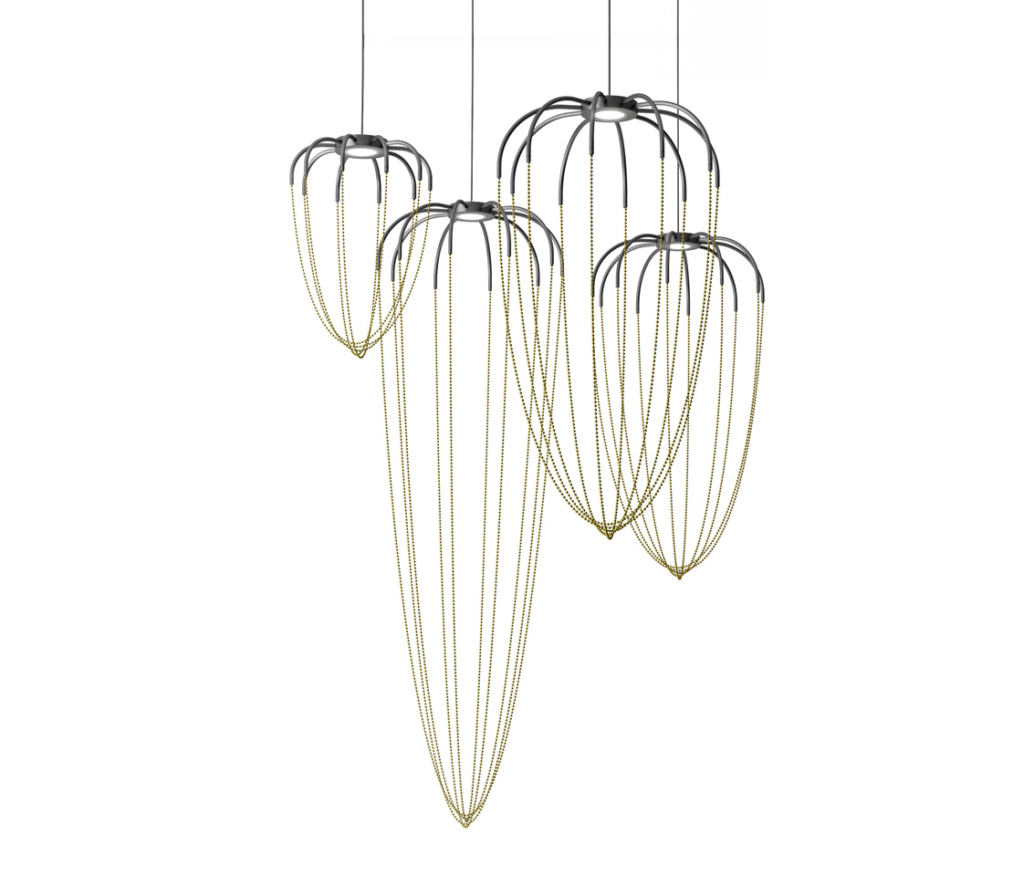 В коллекцию входят 4 светильника высотой 54, 80, 100 и 170см, антрацитовый серый/латунь или антрацитовый серый/черный никель.