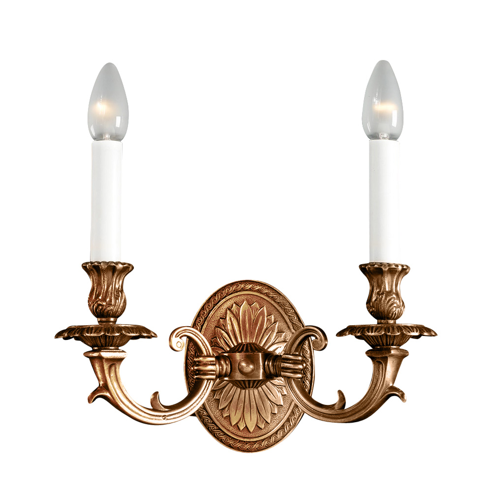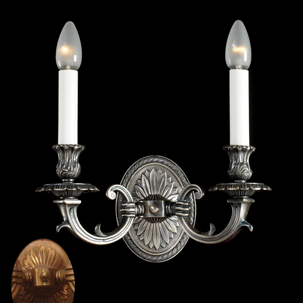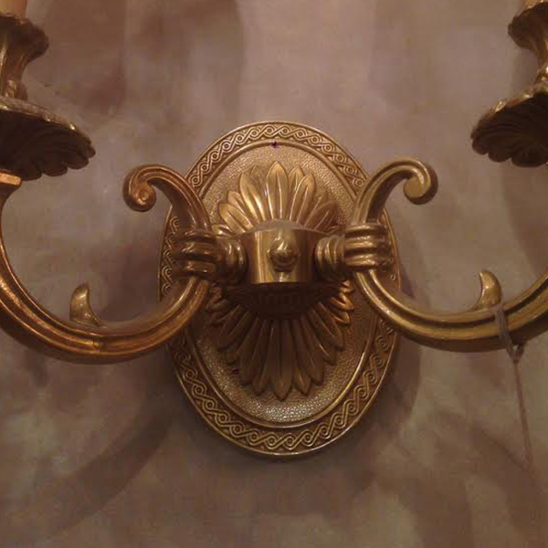 Бра 2-х рожковое на металлической арматуре золотого цвета.