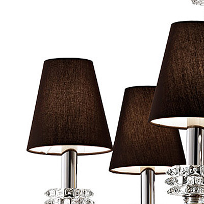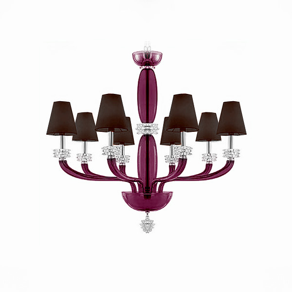 Люстра из коллекции Rotterdam из муранского стекла фиолетового цвета. Текстильные плафоны черного цвета скрывают лампы. Муранское стекло ручной работы от лучших итальянских мастеров.