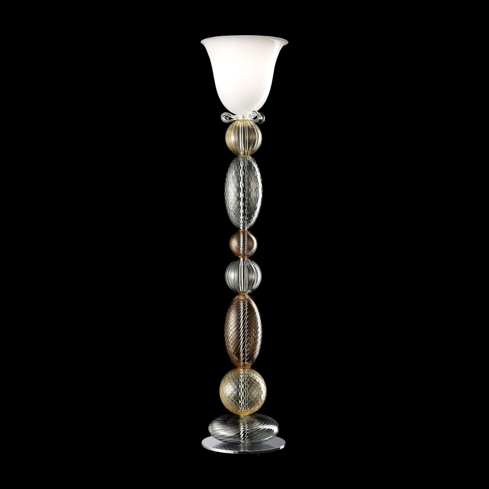 Торшер Barovier&Toso 7313 из коллекции Perseus на арматуре из стекла прозрачного цвета разных оттенков коричневого, металлические части хромированного цвета.