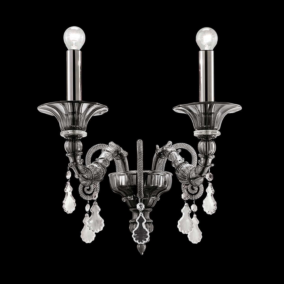 Настенный светильник Barovier&Toso 5560/02 из коллекции Baikal на арматуре прозрачного цвета, металлические части хромированного цвета. Богатый драгоценными деталями, такими как подвески, пасторали и бобе, которые добавляют царственного величия и делают этот объект абсолютным главным героем пространства. Муранское стекло ручной работы от лучших итальянских мастеров.