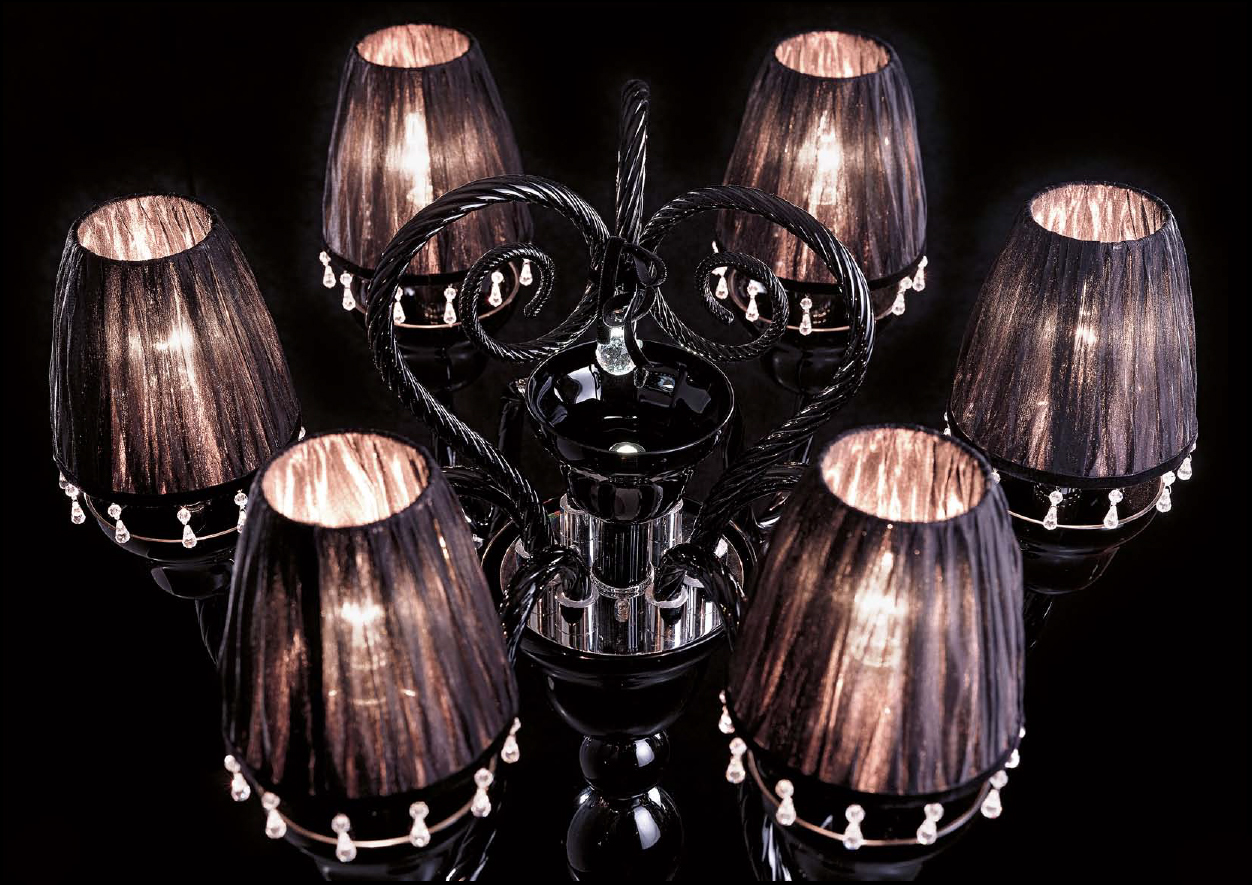 Бра двух рожковое из коллекции LA FEMME выполнено из муранского стекла черного цвета. Подвески из черного хрусталя Swarovski. Абажуры из органзы черного цвета без подвесок по краю (версия ELEGANT).