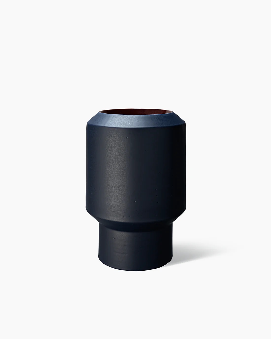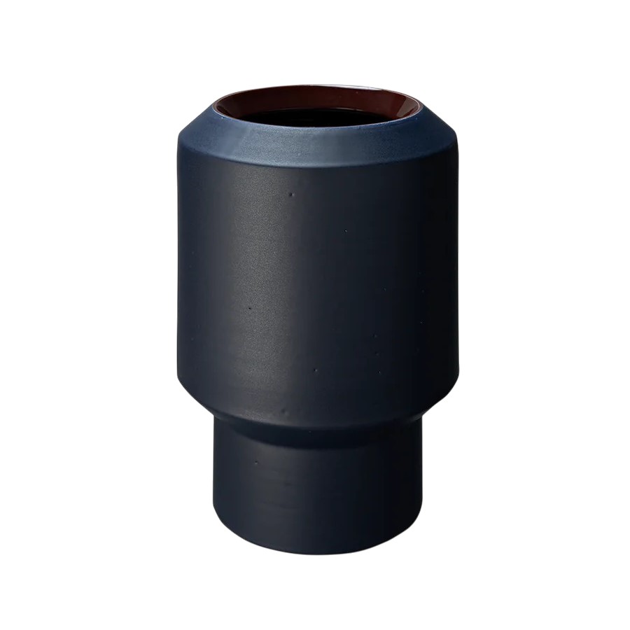 Ваза Bitossi Ceramiche Tribe 36 Matte blue/glossy brown цилиндрической формы, отлита вручную из огнеупорной белой глины. Поверхность украшена двухцветной глазурью: матово-темно-синей снаружи и глянцево-коричневой внутри.