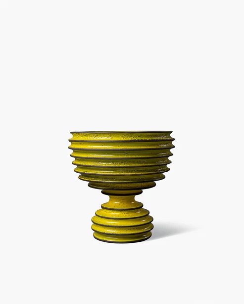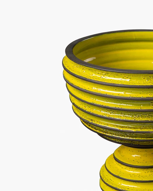 Ваза Bitossi Ceramiche Revolver Yellow/brown изготовлена из белой глины методом литья и покрыта желтой глазурью поверх коричневого ангоба.