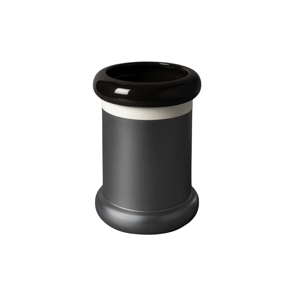 Ваза Bitossi Ceramiche Untitled 28 Oxidized black изготовлена из белой глины и покрыта двухцветной глянцевой чёрной и окисленной матовой эмалью серого цвета.