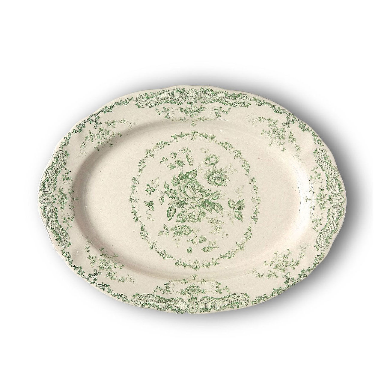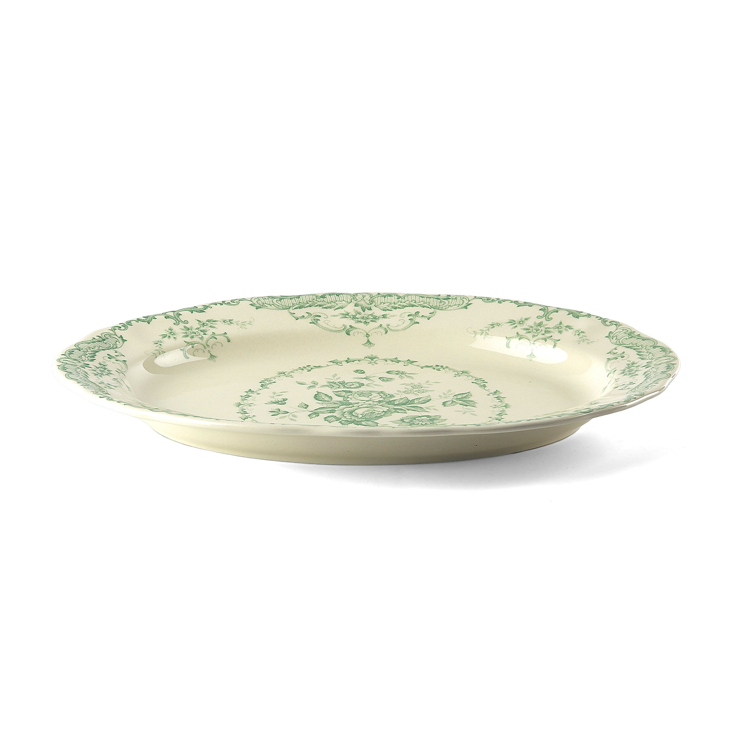 Роскошное овальное фарфоровое блюдо длиной 30,5 см с росписью цвета шалфея. Подходит для посудомоечной машины и микроволновой печи.