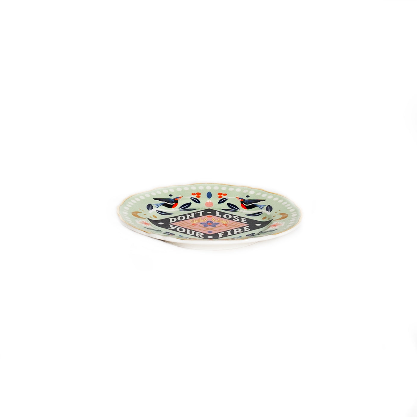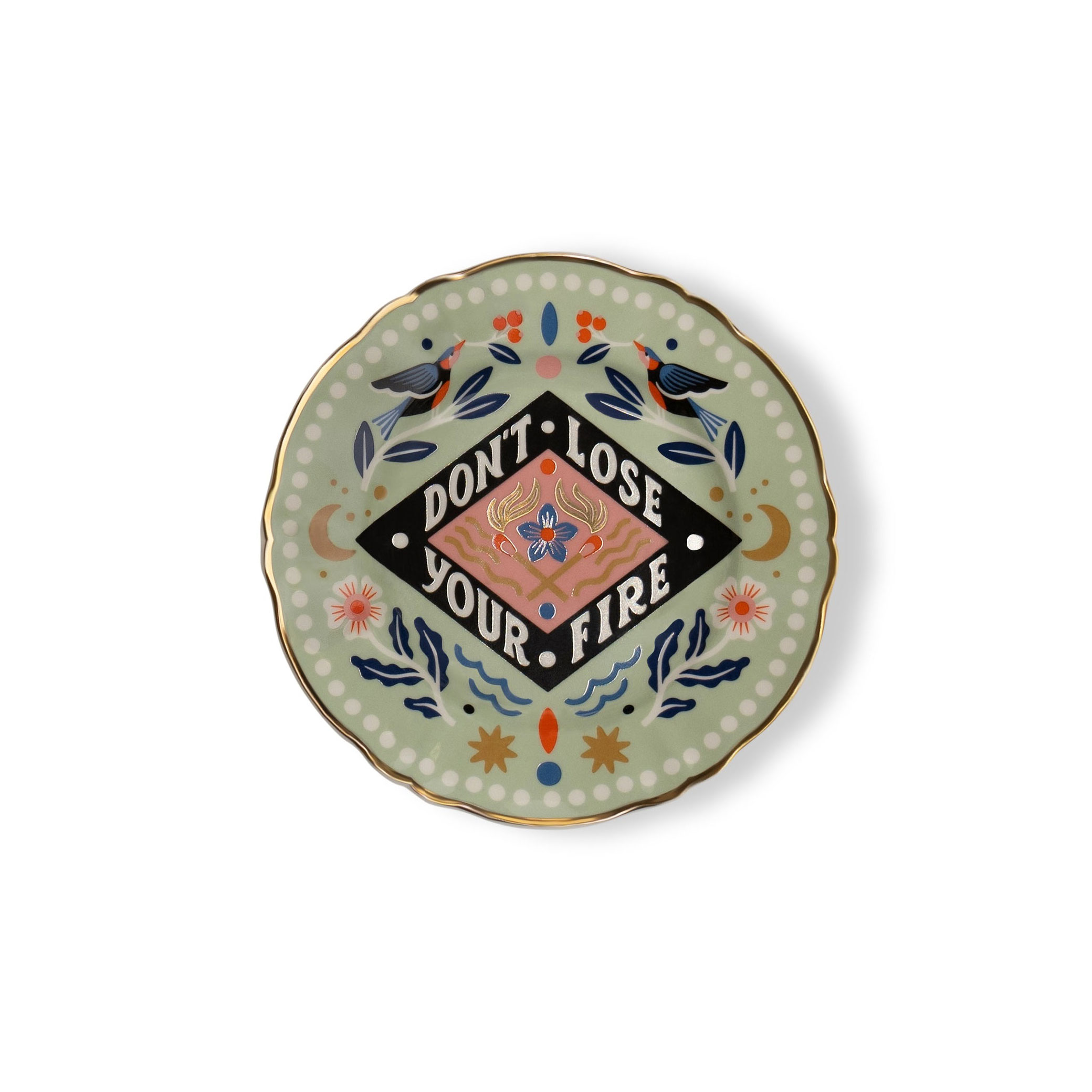 Круглая фарфоровая десертная тарелка диаметром 16,5 см с насыщенным декором Don't Lose your Fire. Подходит для посудомоечной машины (не более 250-ти циклов), не подходит для микроволновой печи. Дизайн: Carmi Grau.