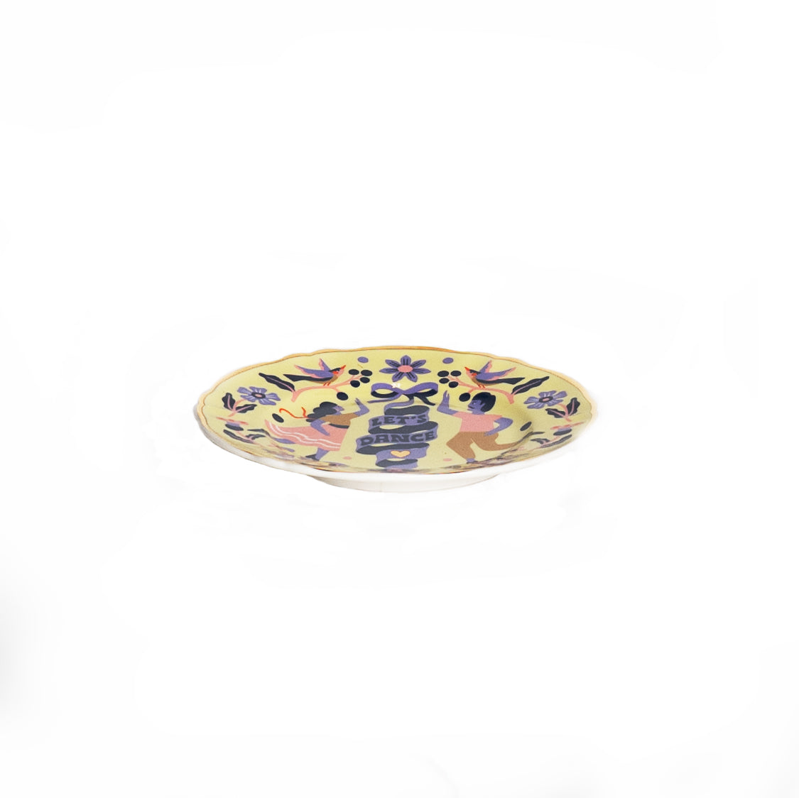 Тематическая десертная тарелка из фарфора диаметром 16,5 см Let's Dance. Подходит для посудомоечной машины (не более 250-ти циклов), не подходит для микроволновой печи. Дизайн: Carmi Grau.