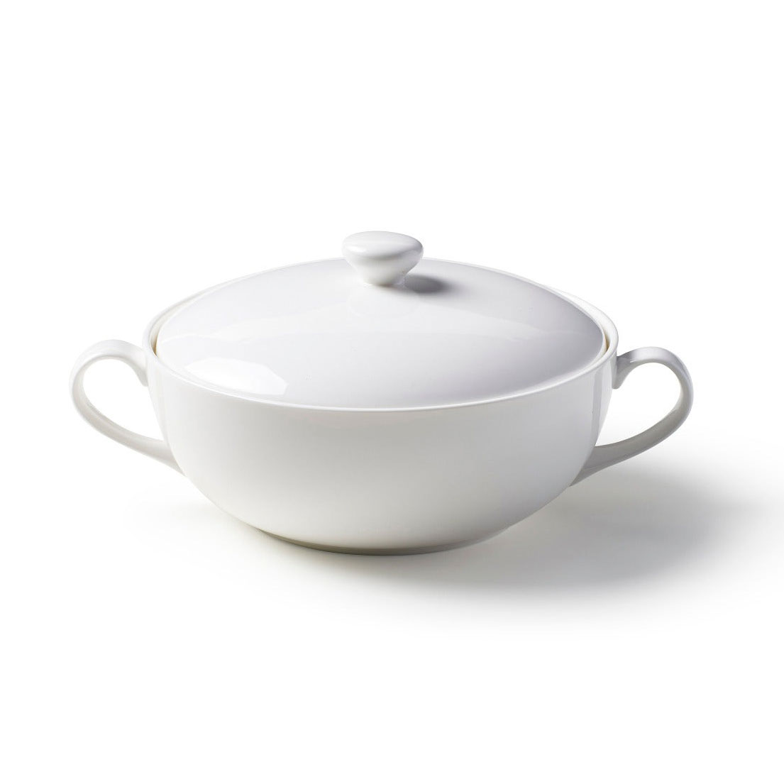 Супница с крышкой из коллекции Bon Ton. Костяной фарфор. Подходит для посудомоечной машины, подходит для микроволновой печи. Белый. Диаметр 23 см.