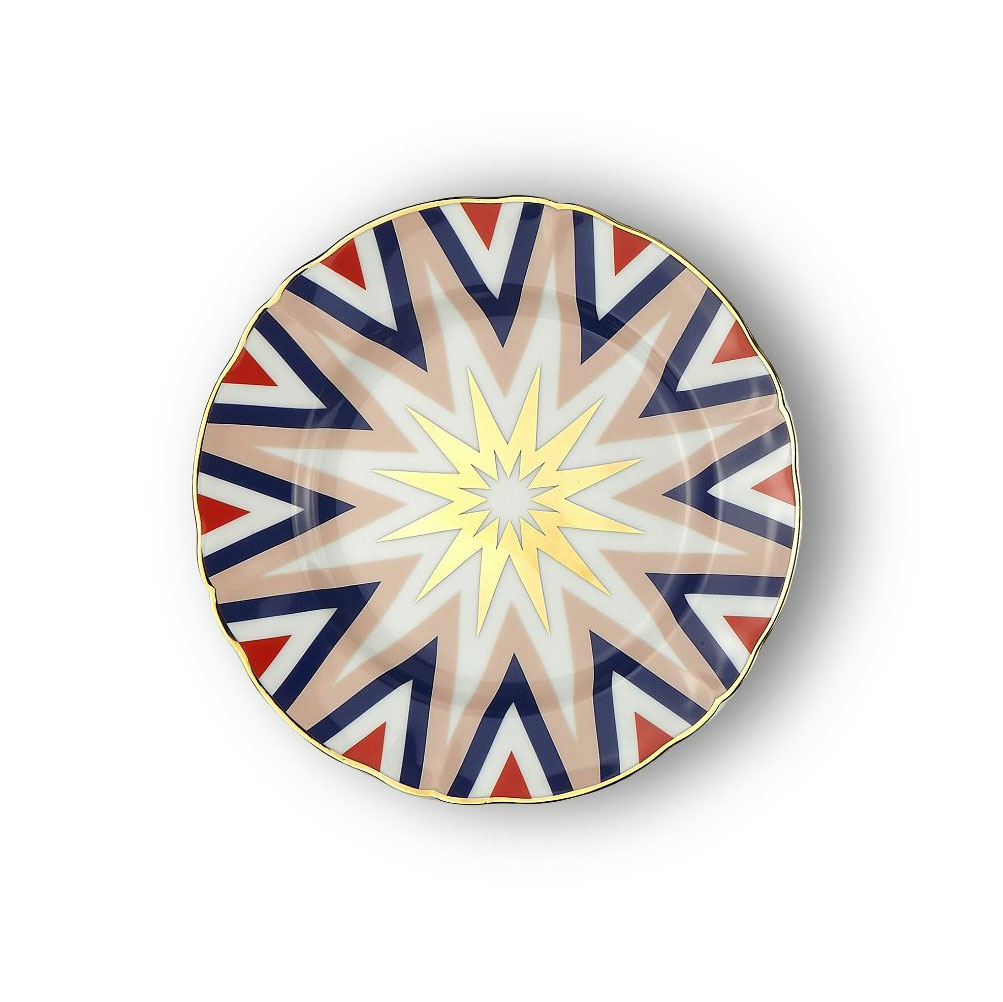 Десертная тарелка Folgore из коллекции Abracadabra. Фарфоровая десертная тарелка с деколью и золотыми деталями. Подходит для посудомоечной машины до 250 циклов, не подходит для микроволновой печи. Диаметр 20,5 см. Дизайн: La Tigre.